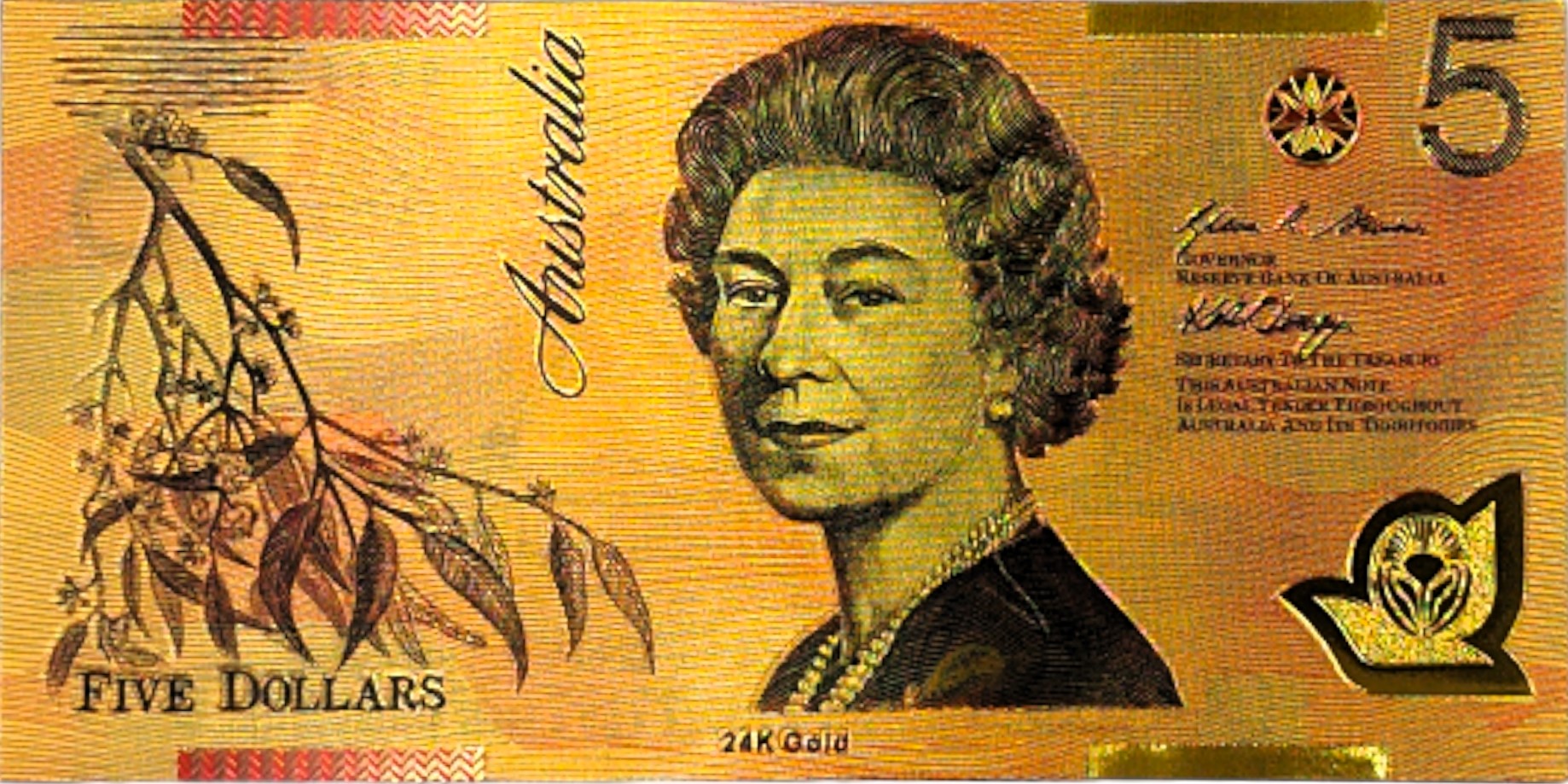 АВСТРАЛІЯ 5 доларів ЄЛИЗАВЕТА II Унікальна колекційна позолочена банкнота