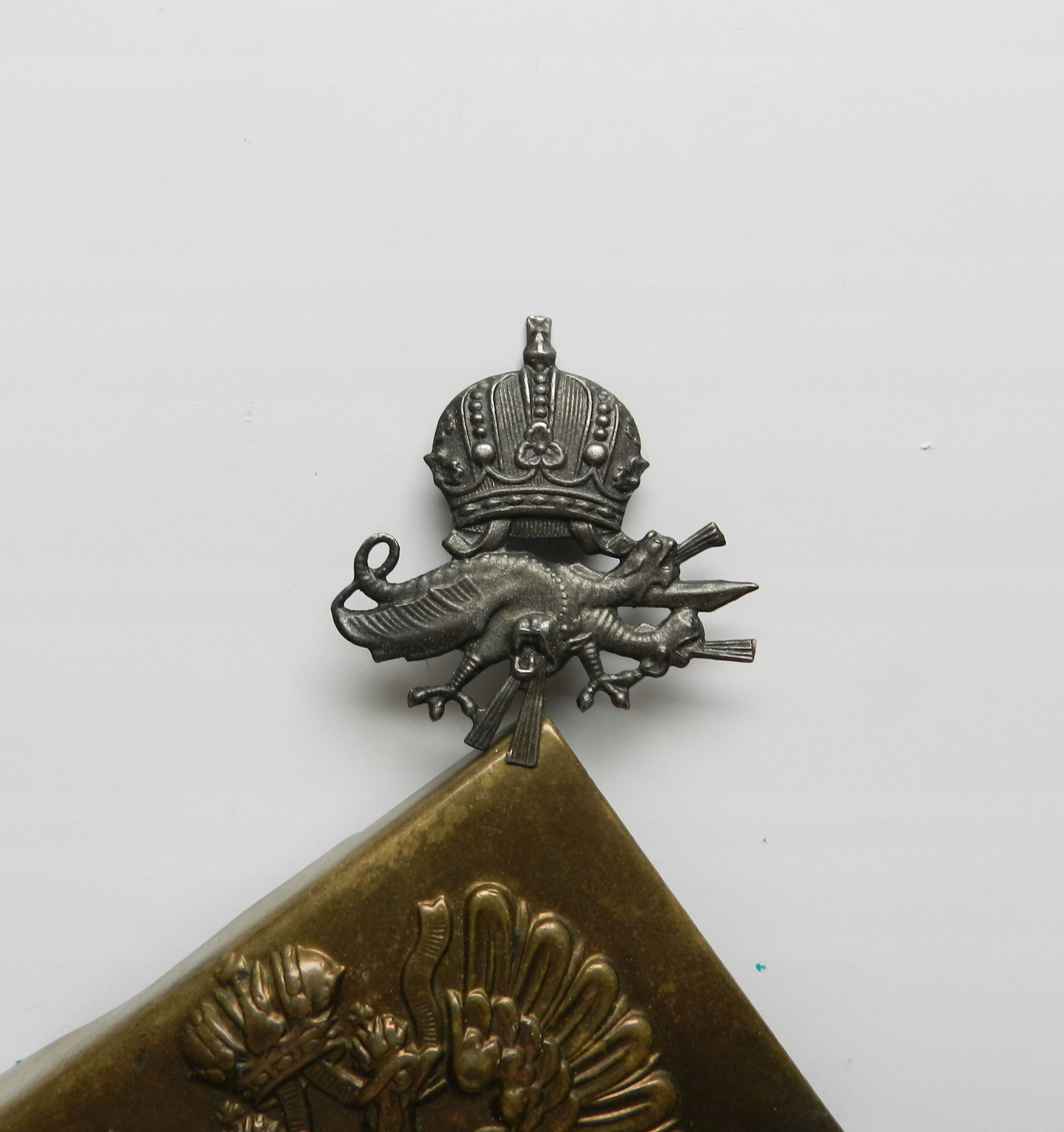 Предмет аукциона — оригинальный значок из вкладки униформы CKM. Разновидность поздней войны, отчеканенная штампом в стальном листе, оцинкованная. Размеры примерно: 39х36 мм. Состояние отличное, самодельное, как на фотографиях. Рекомендую для коллекции, это редкость.