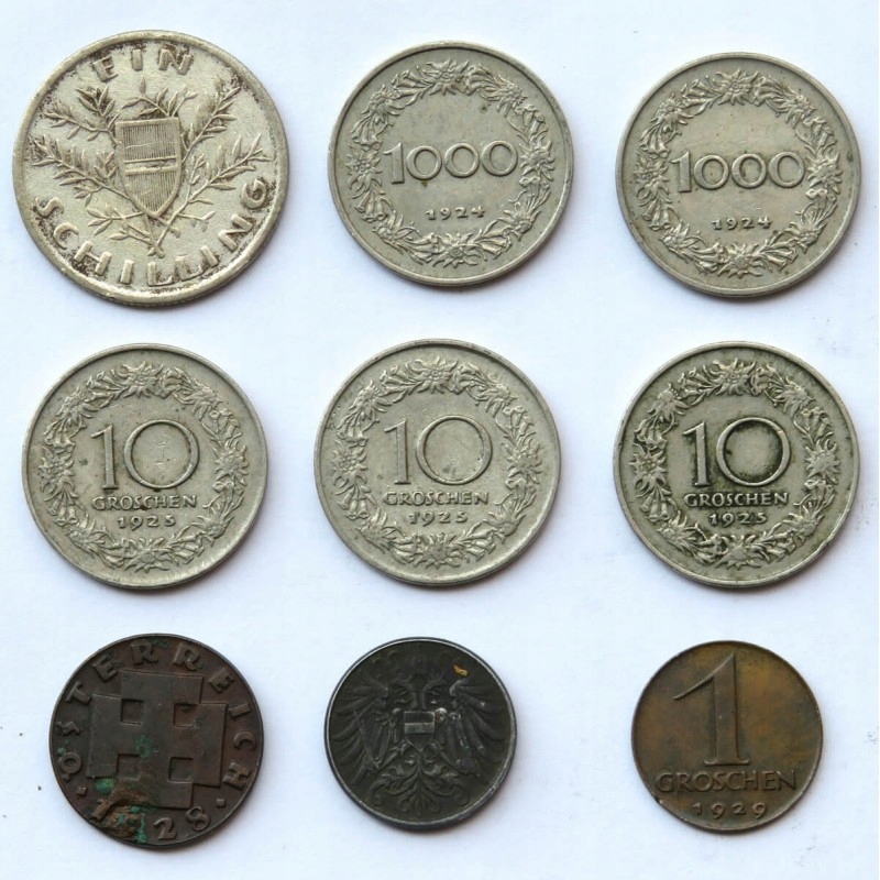 Австрія, 9 монет 1918-1929, також срібло