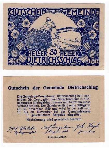 АВСТРИЯ / ДИТРИХШЛАГ 1920 50 ХЕЛЛЕР