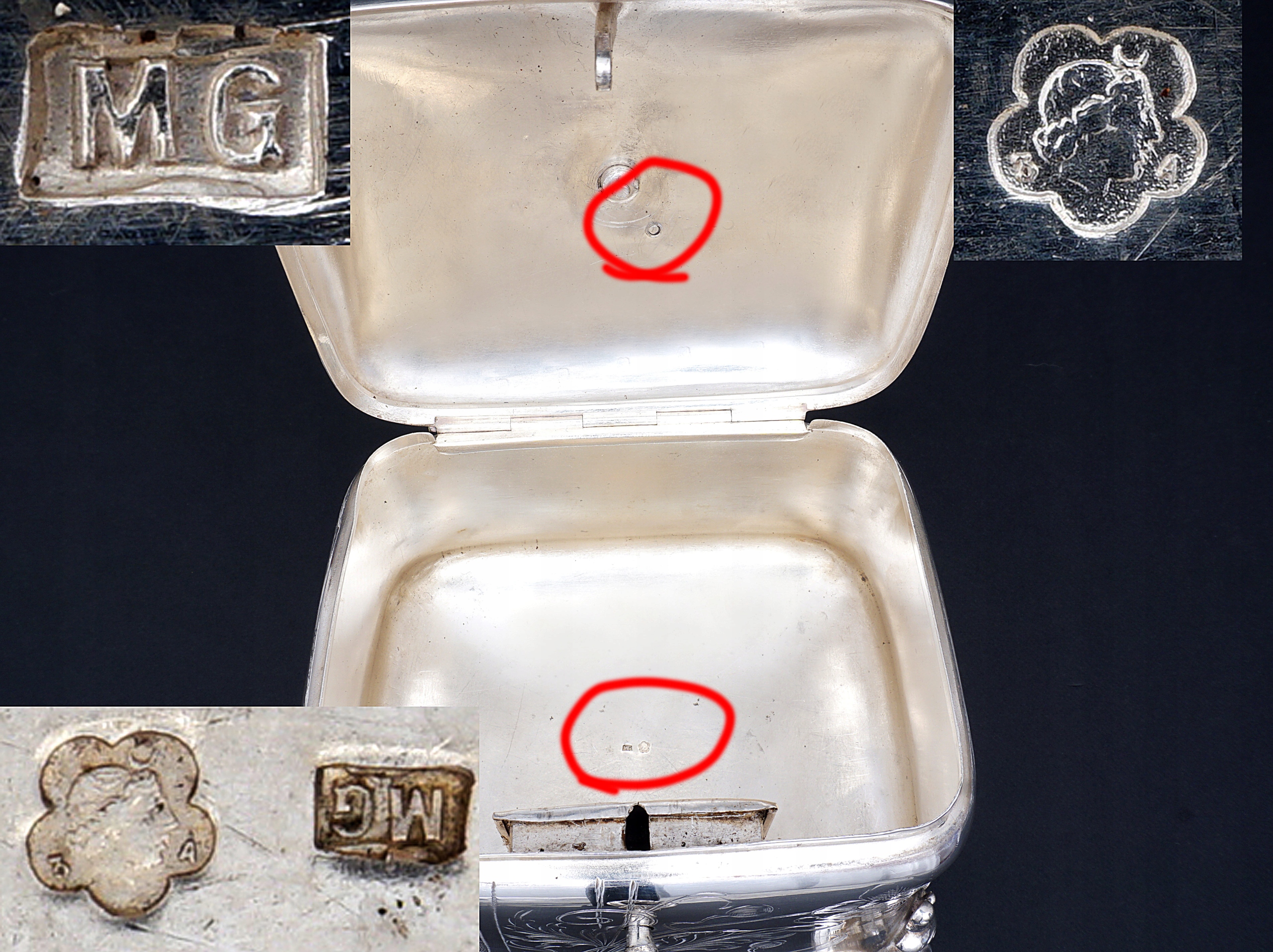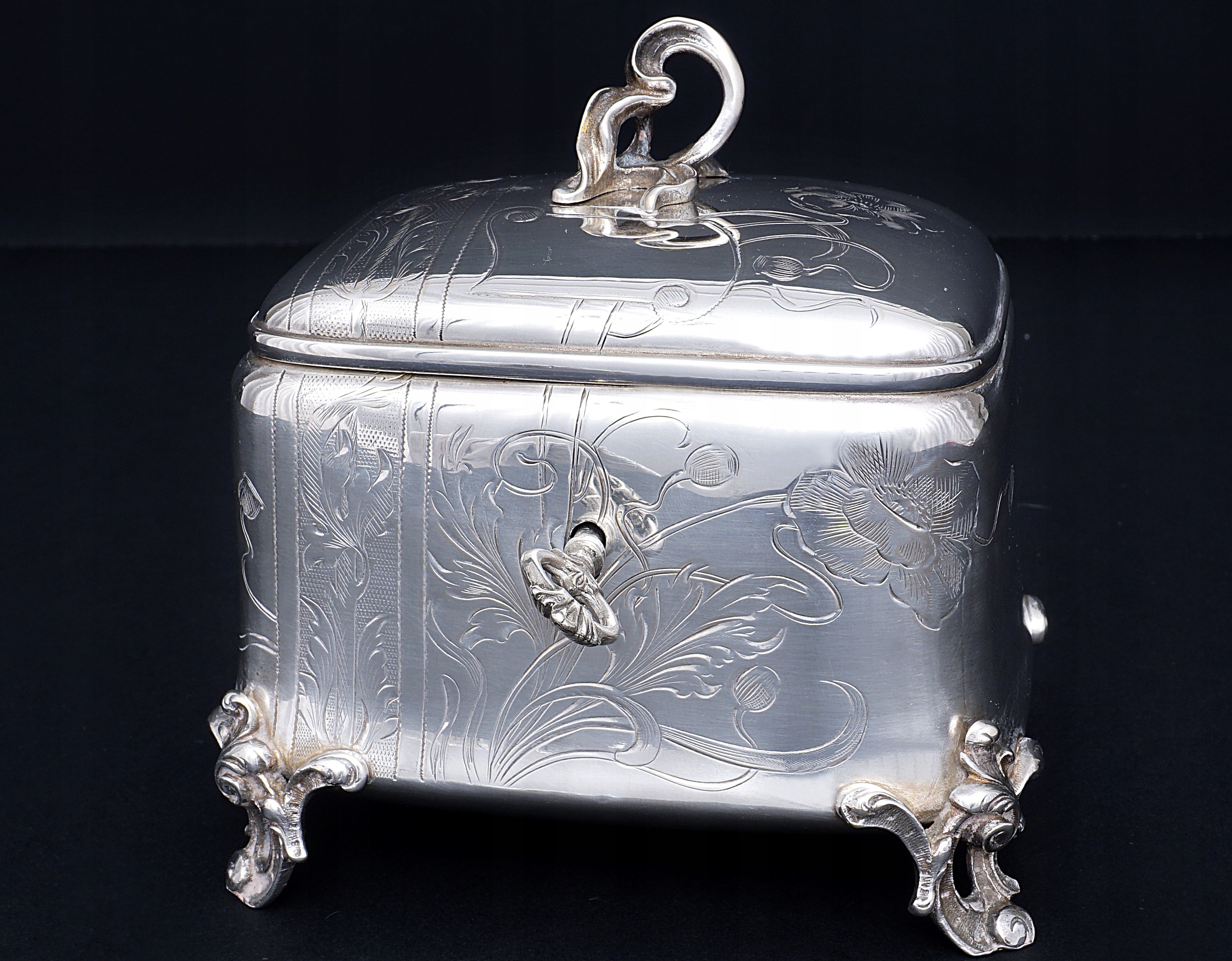 Австро -хунгар 19 -го века - серебряная коробка сахарная чаша - с ключом