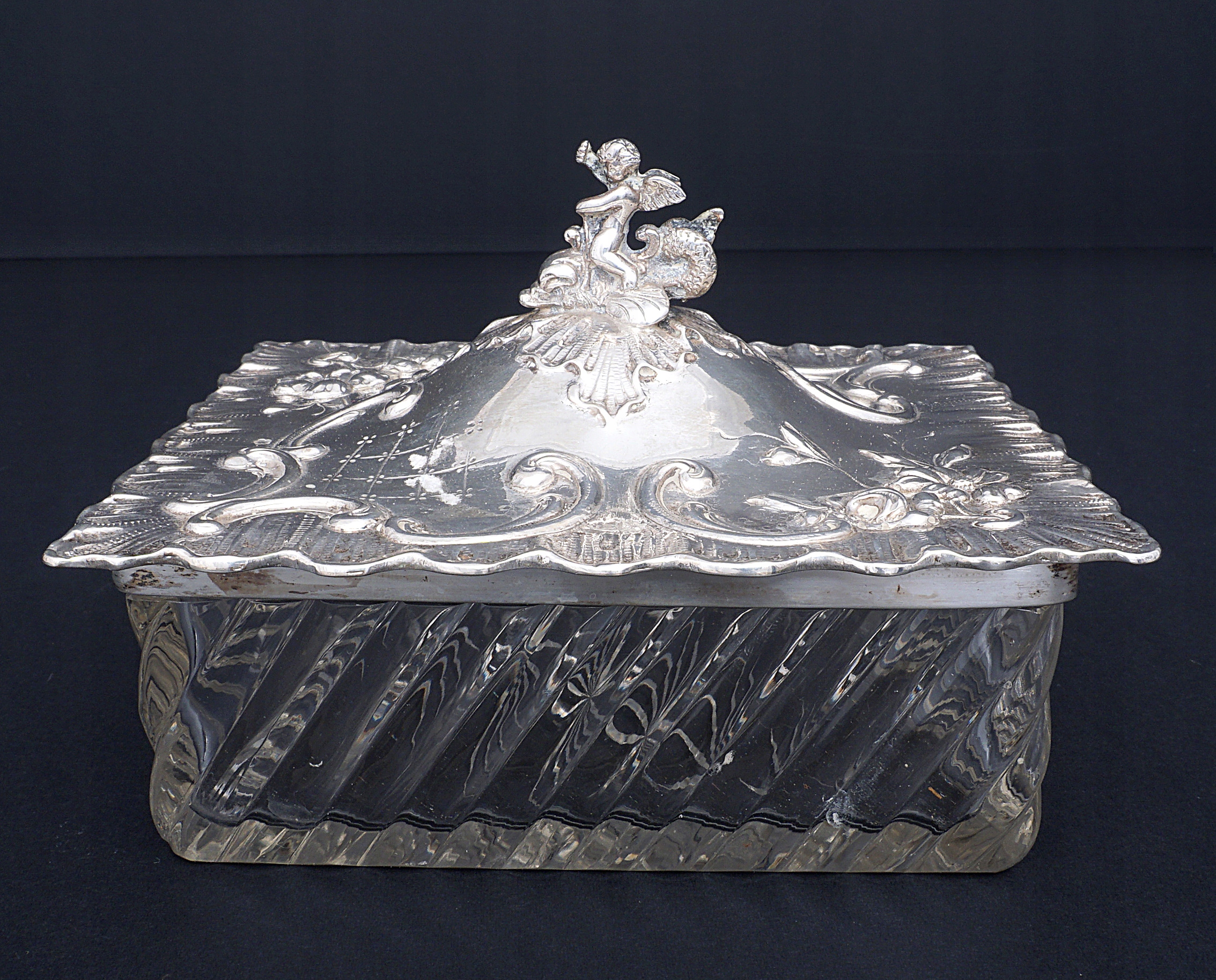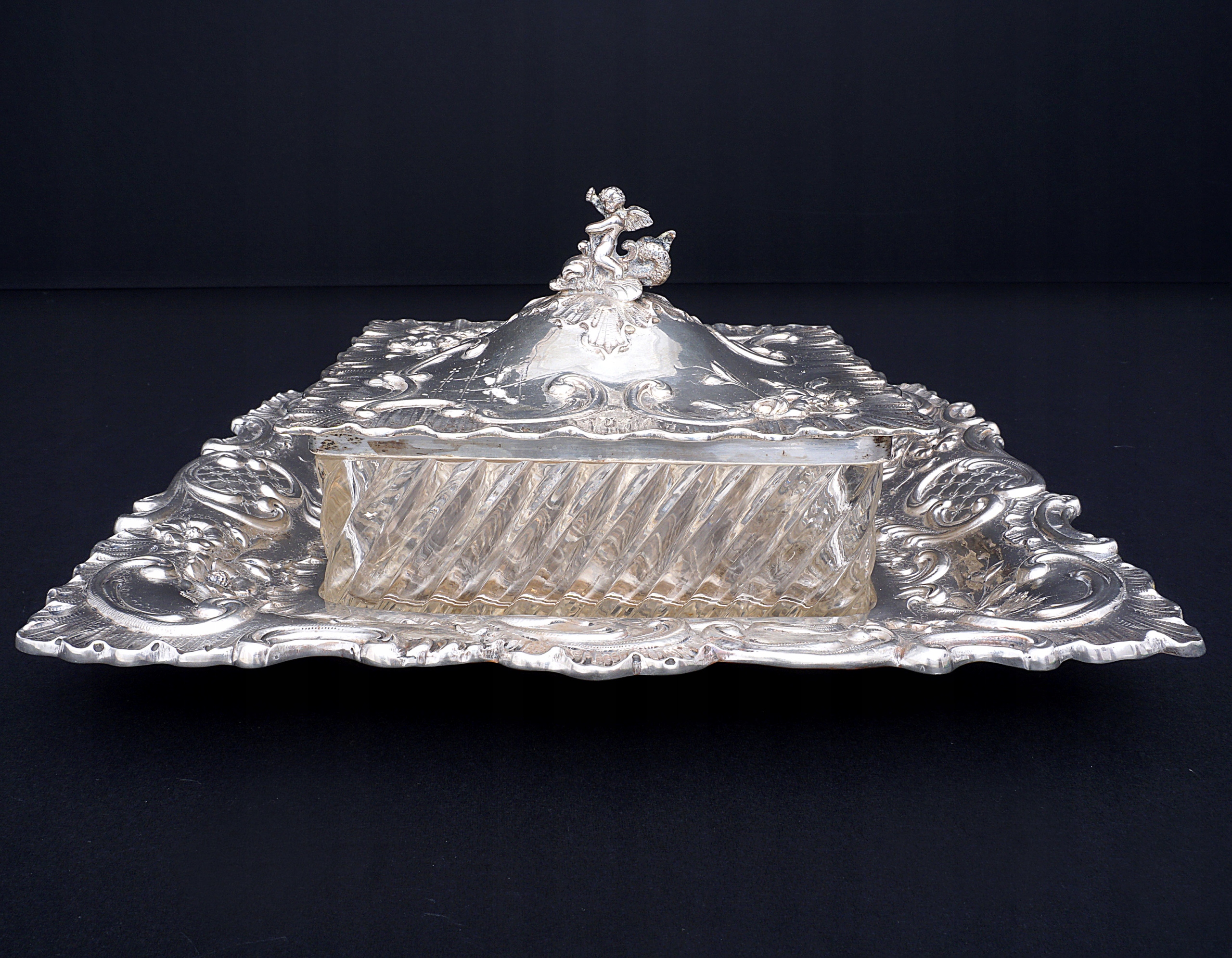 Большая масленка из серебра 800/1000 пробы.