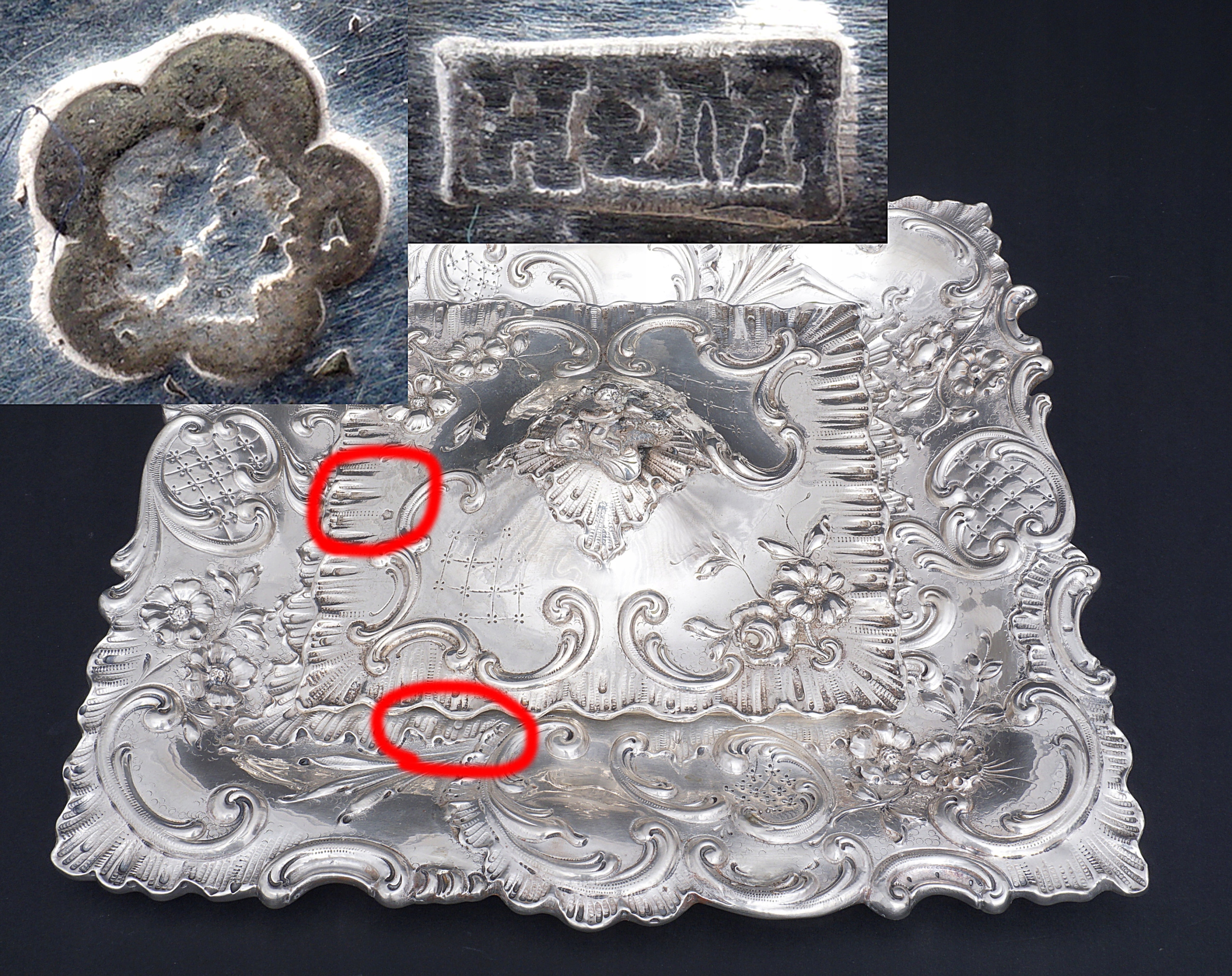 Клеймо - голова Дианы и клеймо ювелира H&M - для идентификации.