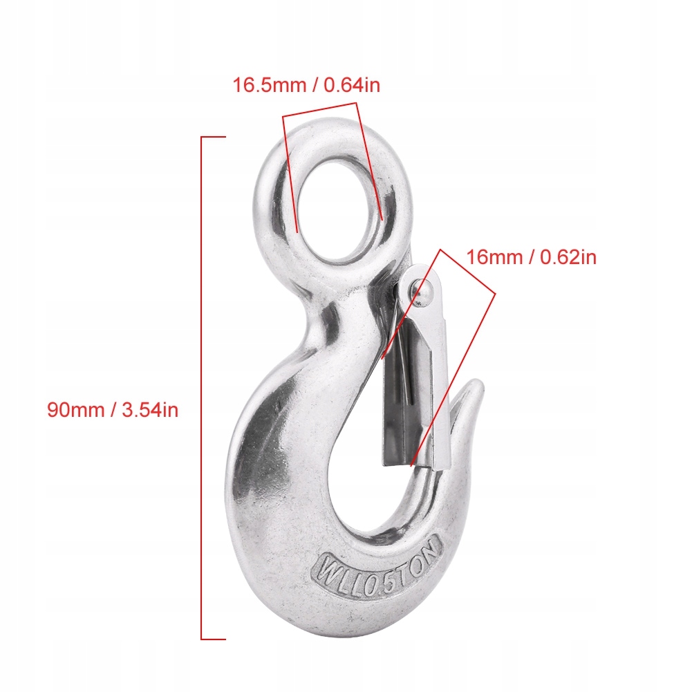 Аутентичный грузоподъемный крюк из нержавеющей стали с круглым ушком из нержавеющей стали 304 (90 мм/0,5 зуб.)