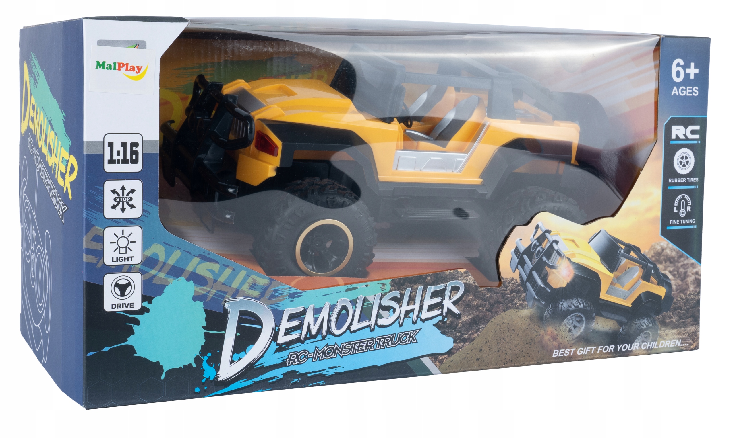 Внедорожник отличается безупречной скоростью и ловкостью. В свою очередь, массивность автомобиля означает, что транспортное средство преодолевает все более крупные препятствия. Большие резиновые колеса не повреждают поверхности в доме и дополнительно амортизируют модель. Надежный задний привод гарантирует полный контроль над автомобилем во время движения.