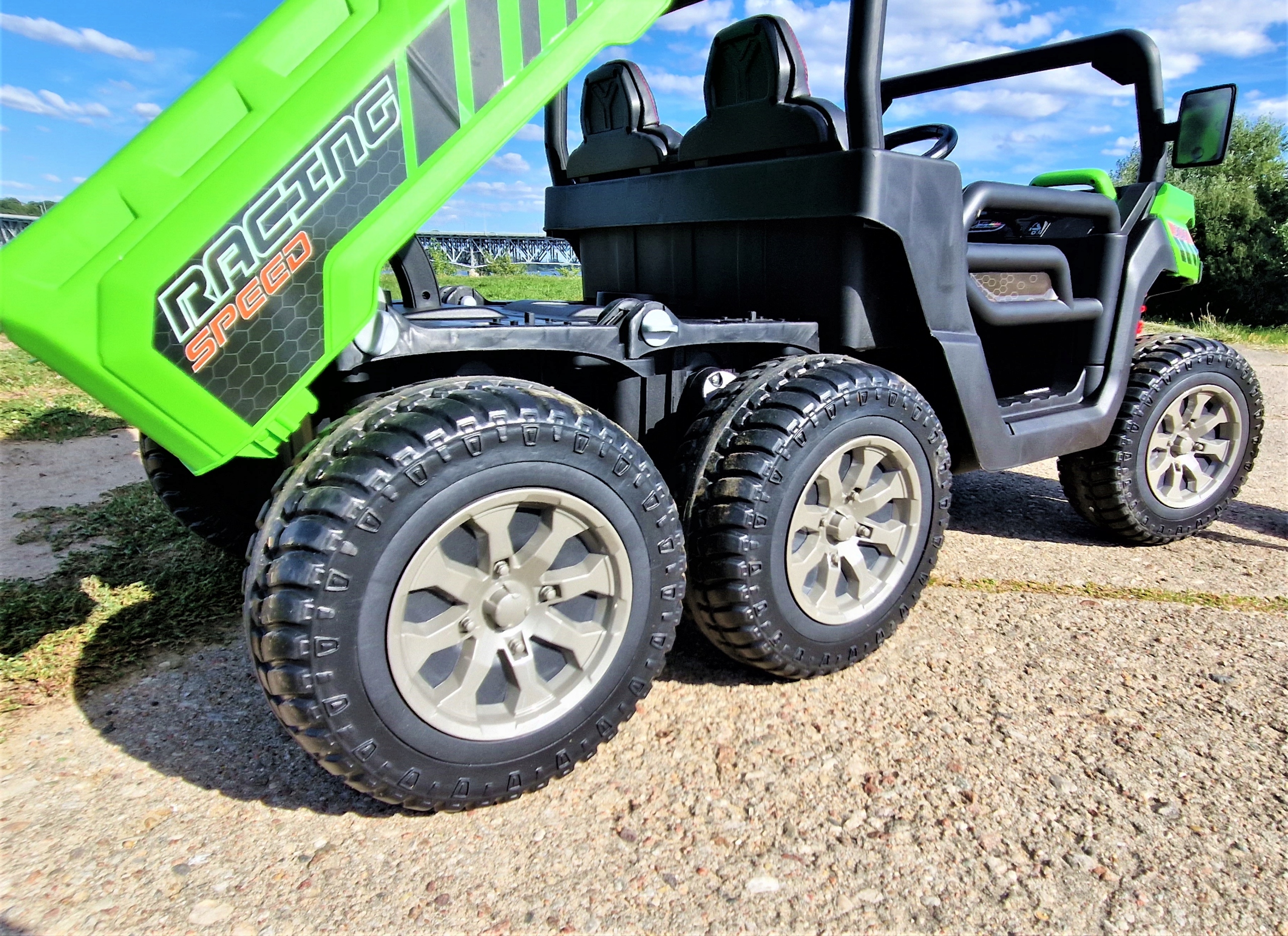Наш автомобиль оснащен 4 самыми мощными двигателями 24 В в этой модели, каждый мощностью 75 Вт и аккумулятор 24 В, 7 Ач — проверьте, есть ли у других