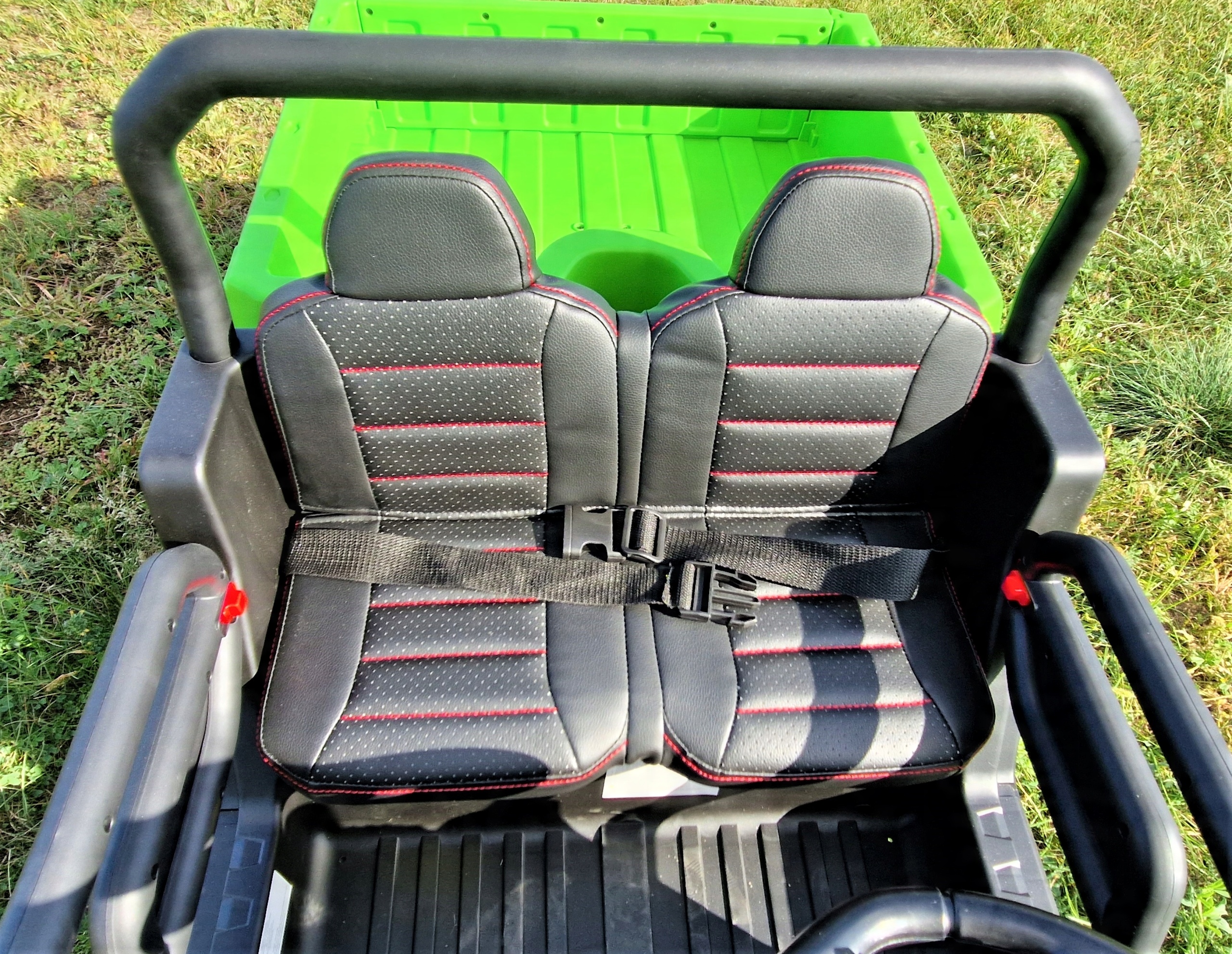 Автомобиль приводится в движение четырьмя мощными двигателями напряжением 24 В, питаемыми от аккумулятора. Имеет медленный старт - плавный старт. Он большой, безопасный, простой в использовании и очень прочный. Спокойно преодолевает небольшие неровности, для самых маленьких любителей авто. Он имеет удобные сиденья, оснащенные ремнем безопасности и пультом для родителя, который позволяет управлять автомобилем вперед и назад, а также влево и вправо. Вы также можете остановить автомобиль с помощью пульта дистанционного управления. Управляя пультом дистанционного управления, вы можете установить в общей сложности 3 скорости движения. Во время вождения ребенок может выбрать одну из двух скоростей.