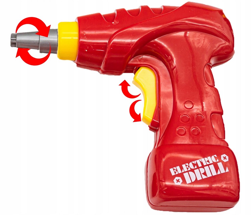 Чтобы вкрутить большое количество шурупов, нужно приложить усилия. Чтобы веселье было более приятным и увлекательным, набор оснащен вращающейся отверткой. Он имеет вращение влево и вправо, поэтому мы можем использовать его как для вкручивания, так и для отвинчивания винтов. Для работы необходимы 2 батарейки типа АА по 1,5 В (не входят в комплект).