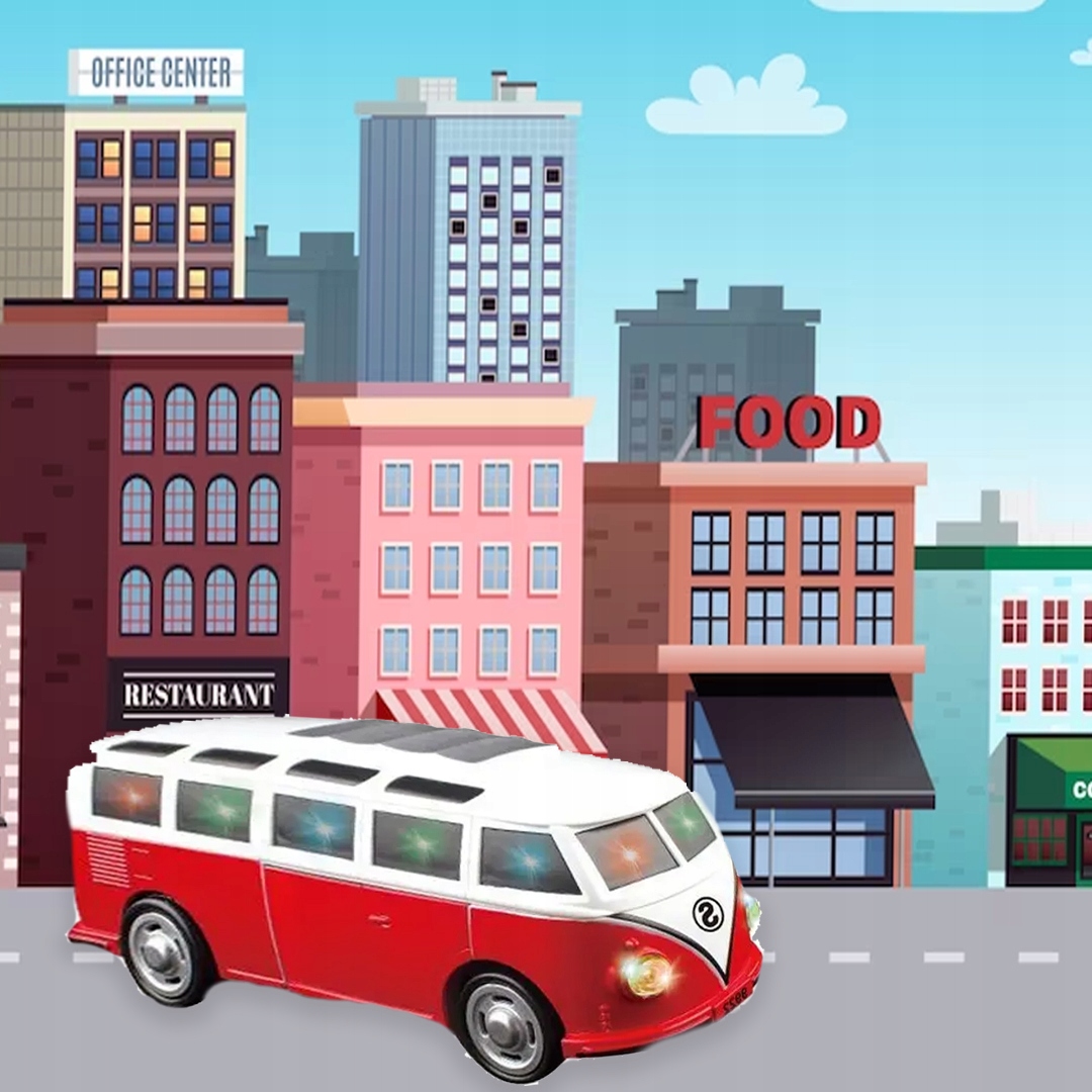 Игрушка издает звуки запуска автомобиля и звуковой сигнал, сопровождаемые короткими звуками. Во время игры салон автобуса и передние фонари мигают. в разных цветах, что только усиливает эти необычные впечатления.