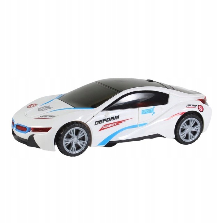 Машина самостоятельно едет во всех направлениях. Он отскакивает от препятствий и меняет направление. Во время игры слушайте звуки сирен и звуки полицейской погони. Во время движения игрушка каждые несколько секунд самостоятельно и автоматически трансформируется: из машинки в робота. В игрушку встроены разноцветные фонари спереди и сзади автомобиля, а также на крыше автомобиля.