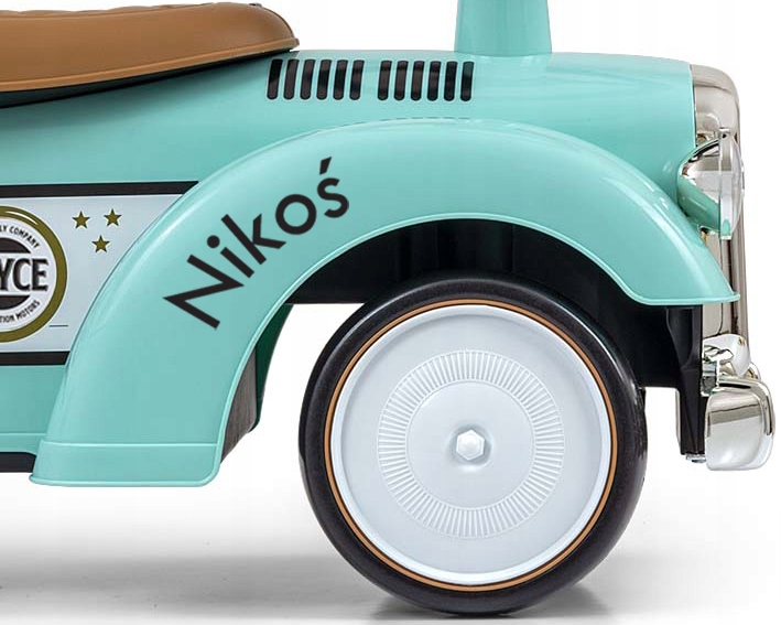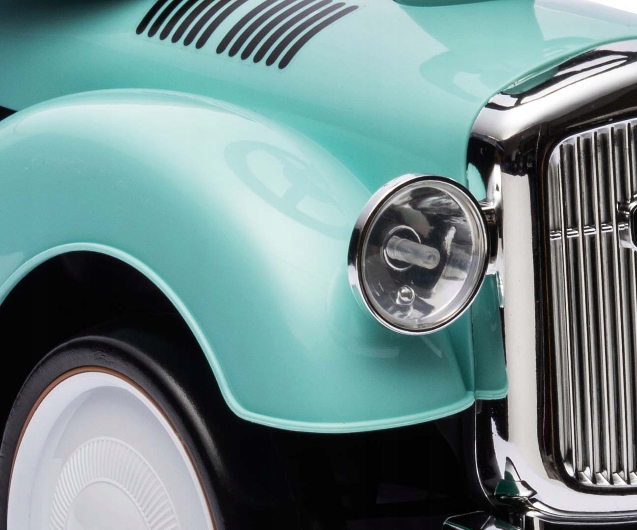 retro Car может использоваться в качестве первого автомобиля с реальным рулем и рогом, также в качестве толкателя с открывающимся хранением для игрушек (небольшой ствол), на задней части помещенного автомобиля С имитацией топливного инфузии и передней части автомобиля- гриль серебряный