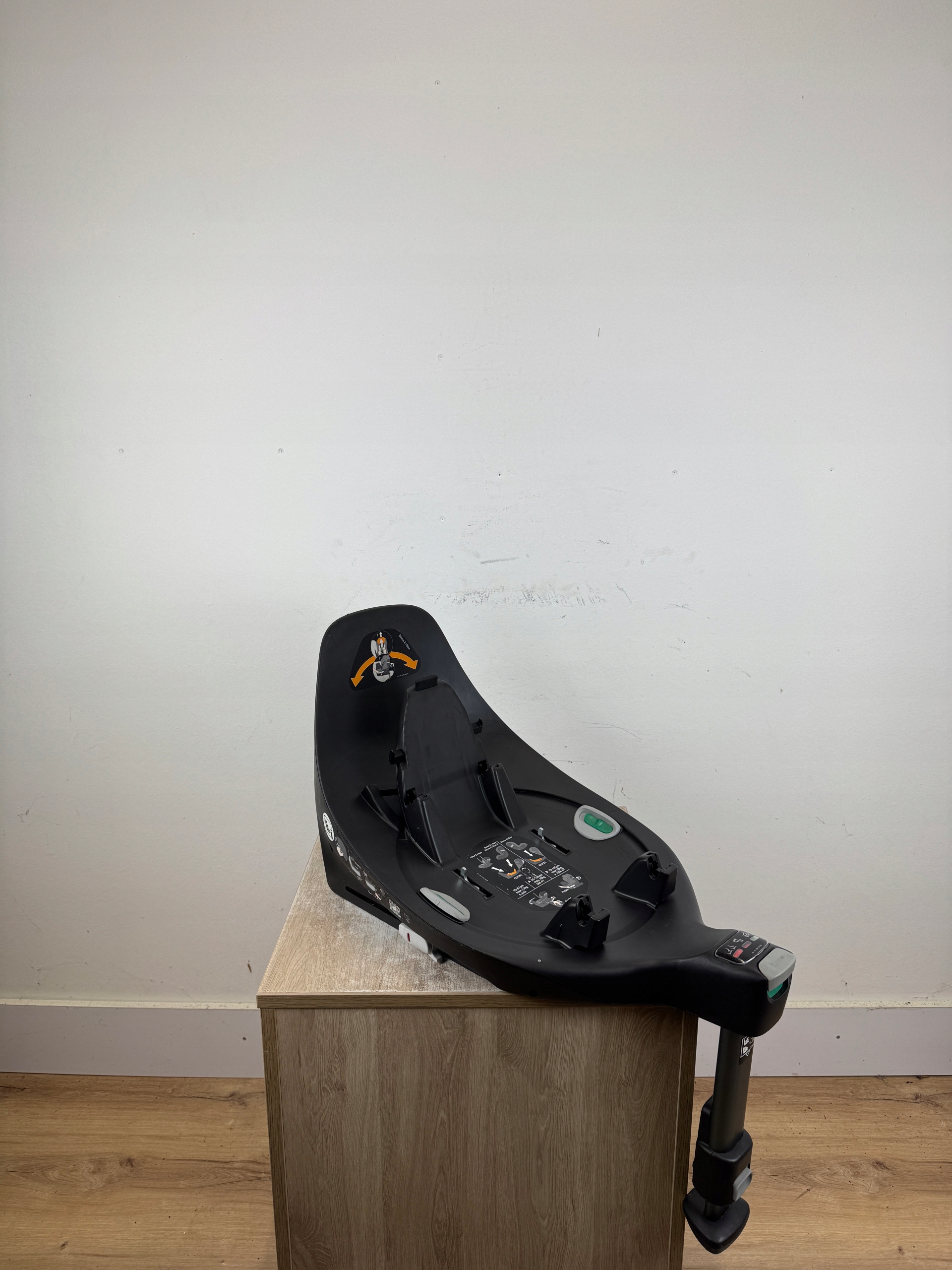 Основа крепится в автомобиле с помощью системы Isofix и стабилизирующей ножки. Он предлагает удобную в использовании систему поворота: