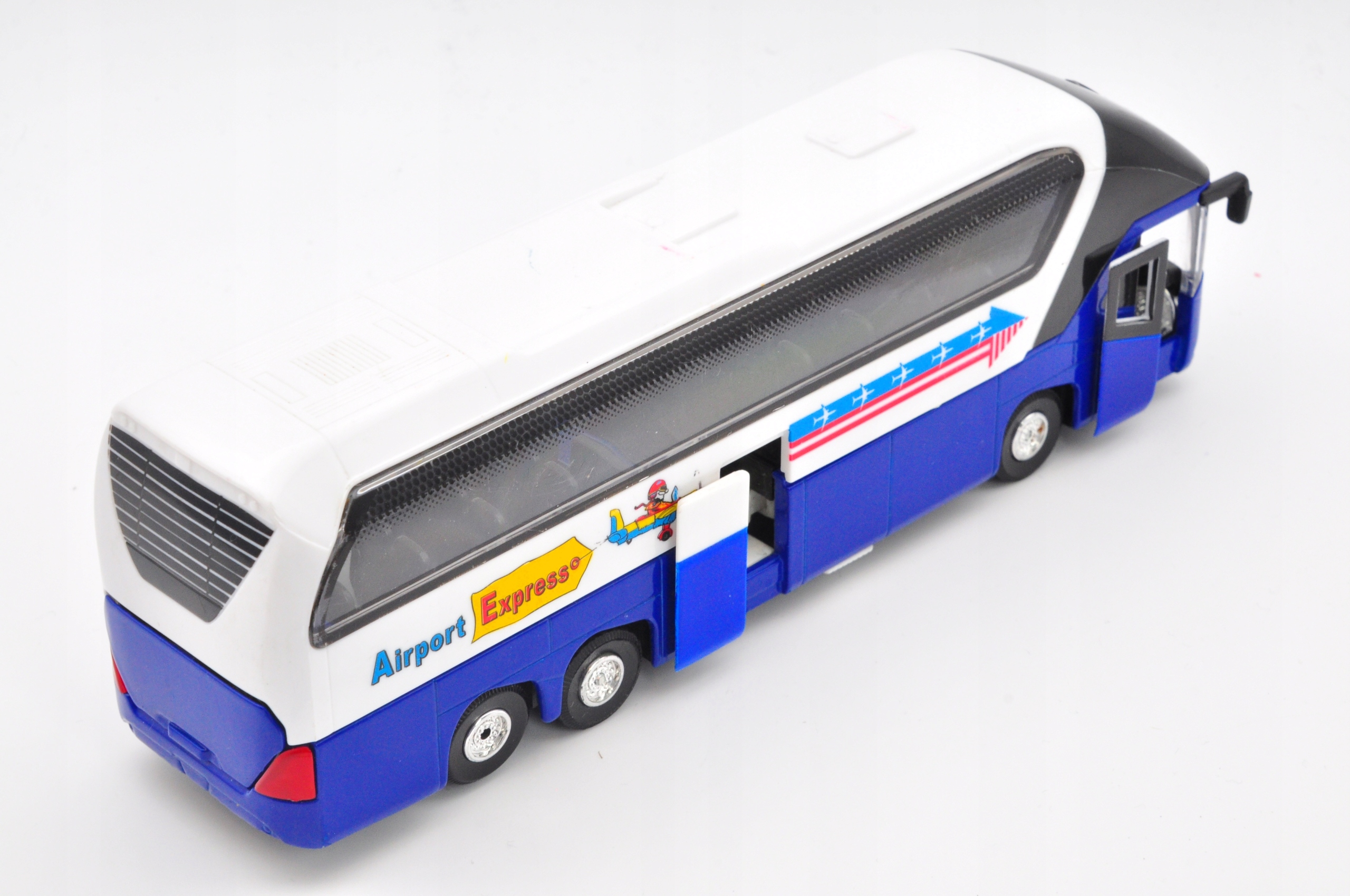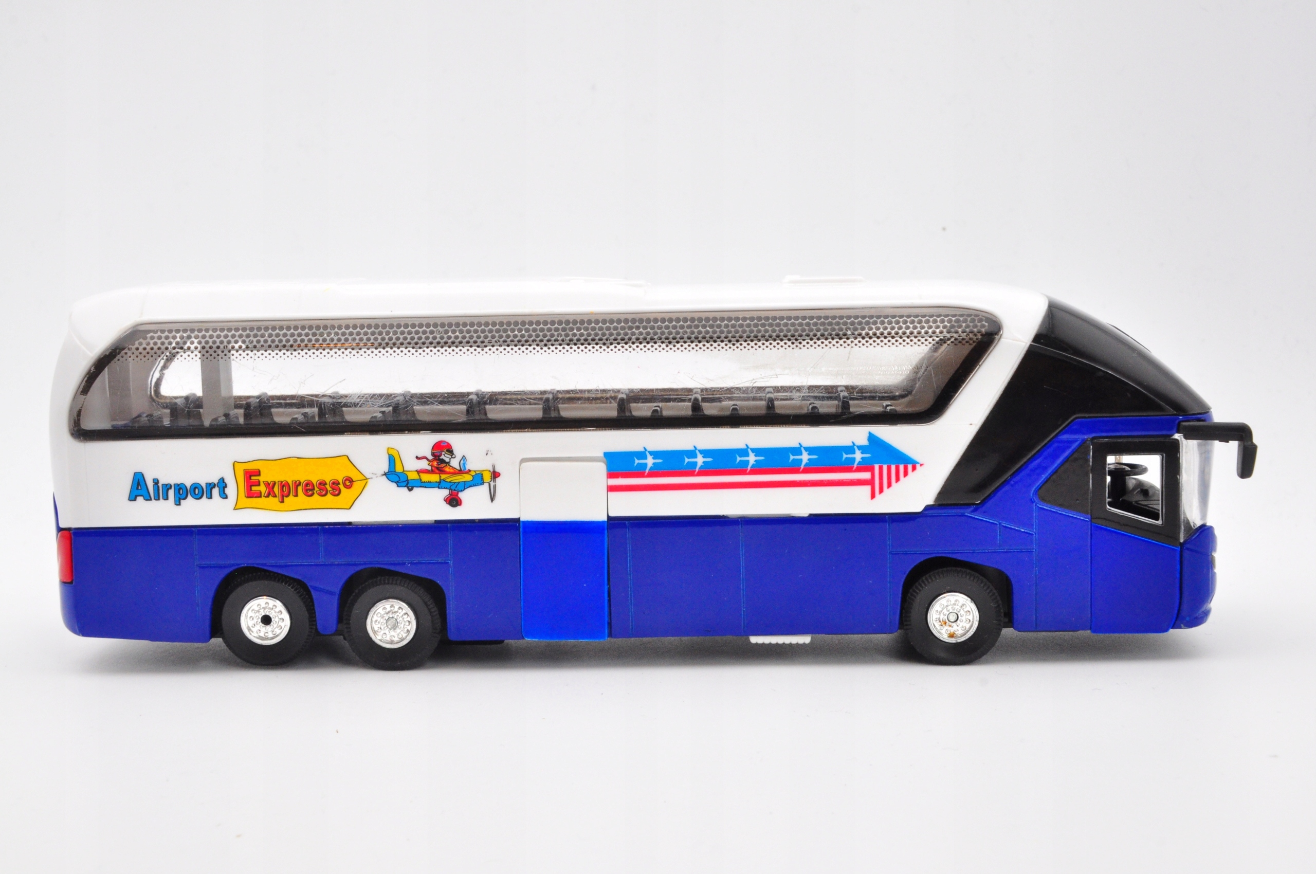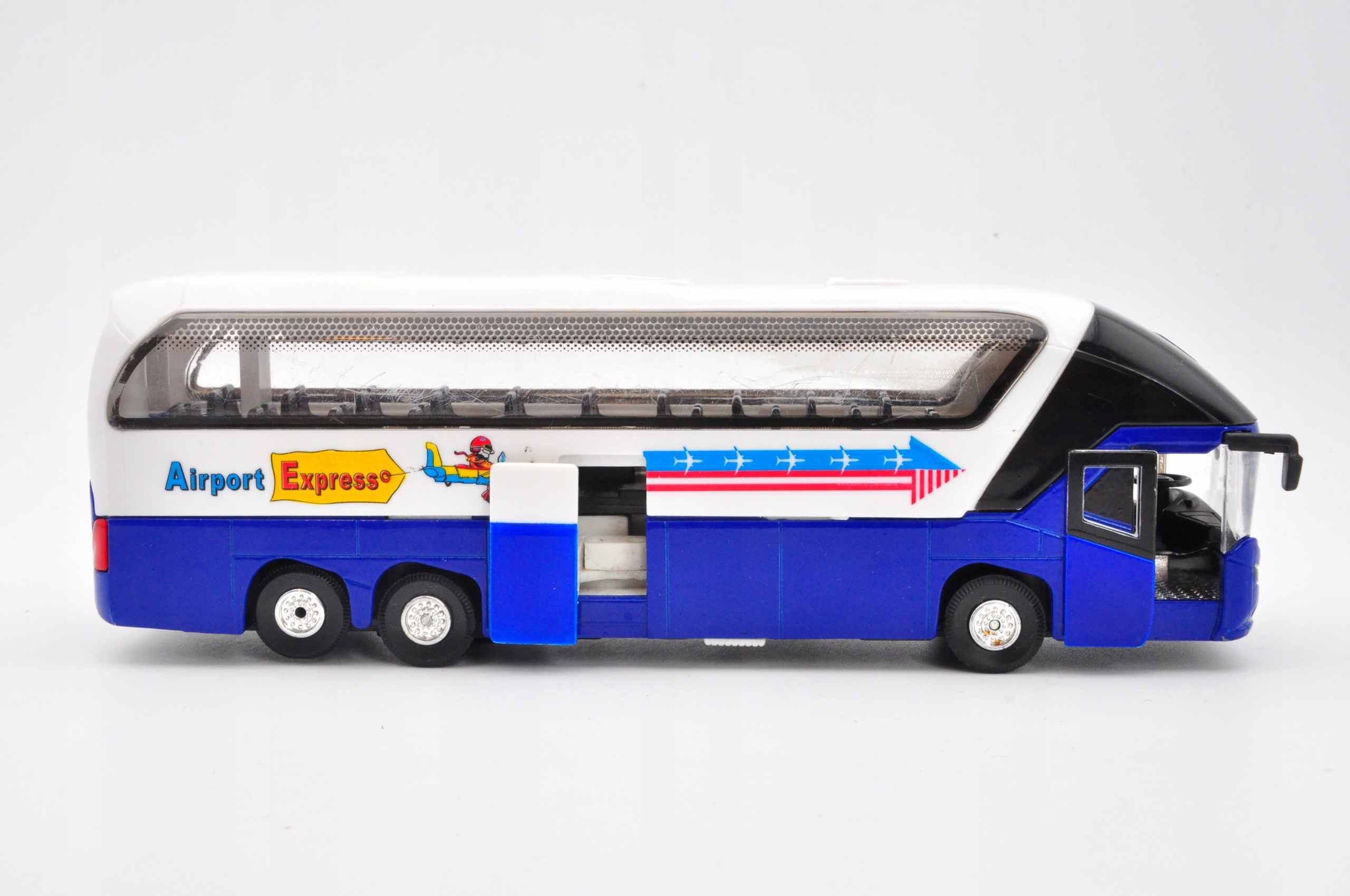 Resorak представляет автобус Airport Express, отличающийся современным дизайном и детальной проработкой. Модель выполнена из металла и пластика, в белом и синем цветах, имеет открывающиеся двери и детализированный двигатель. Его длина составляет 190 мм, что соответствует масштабу 1:64. Состояние модели очень хорошее, следы использования минимальны. Это привлекательное дополнение к любой коллекции, особенно для любителей общественного транспорта и атмосферы аэропорта.