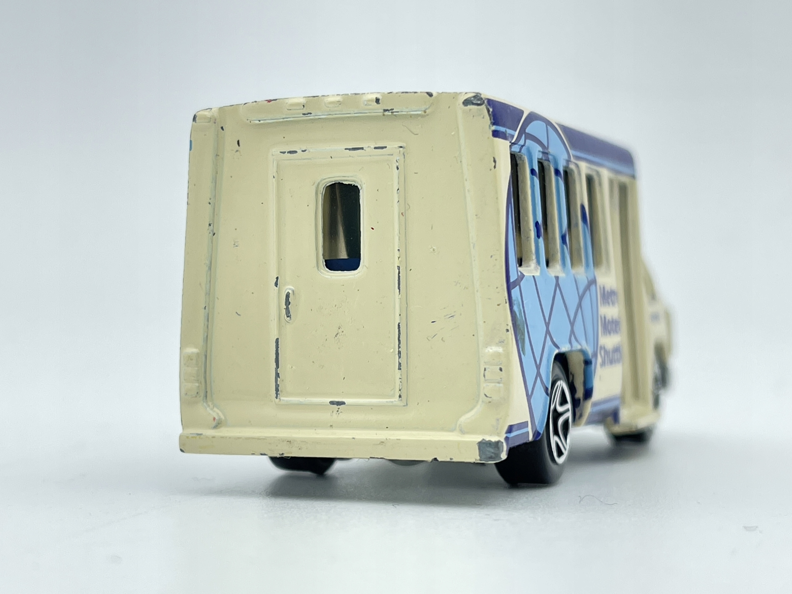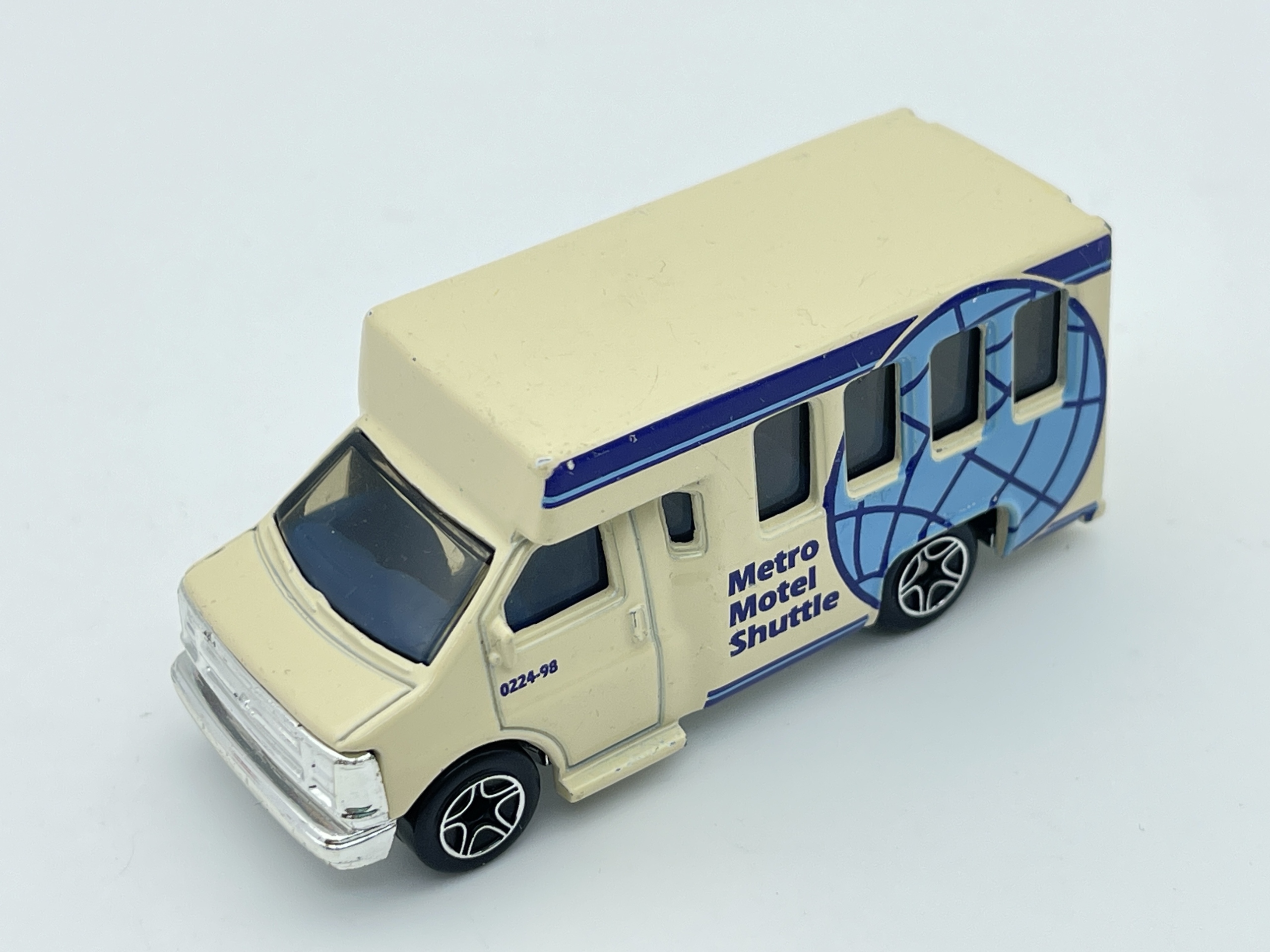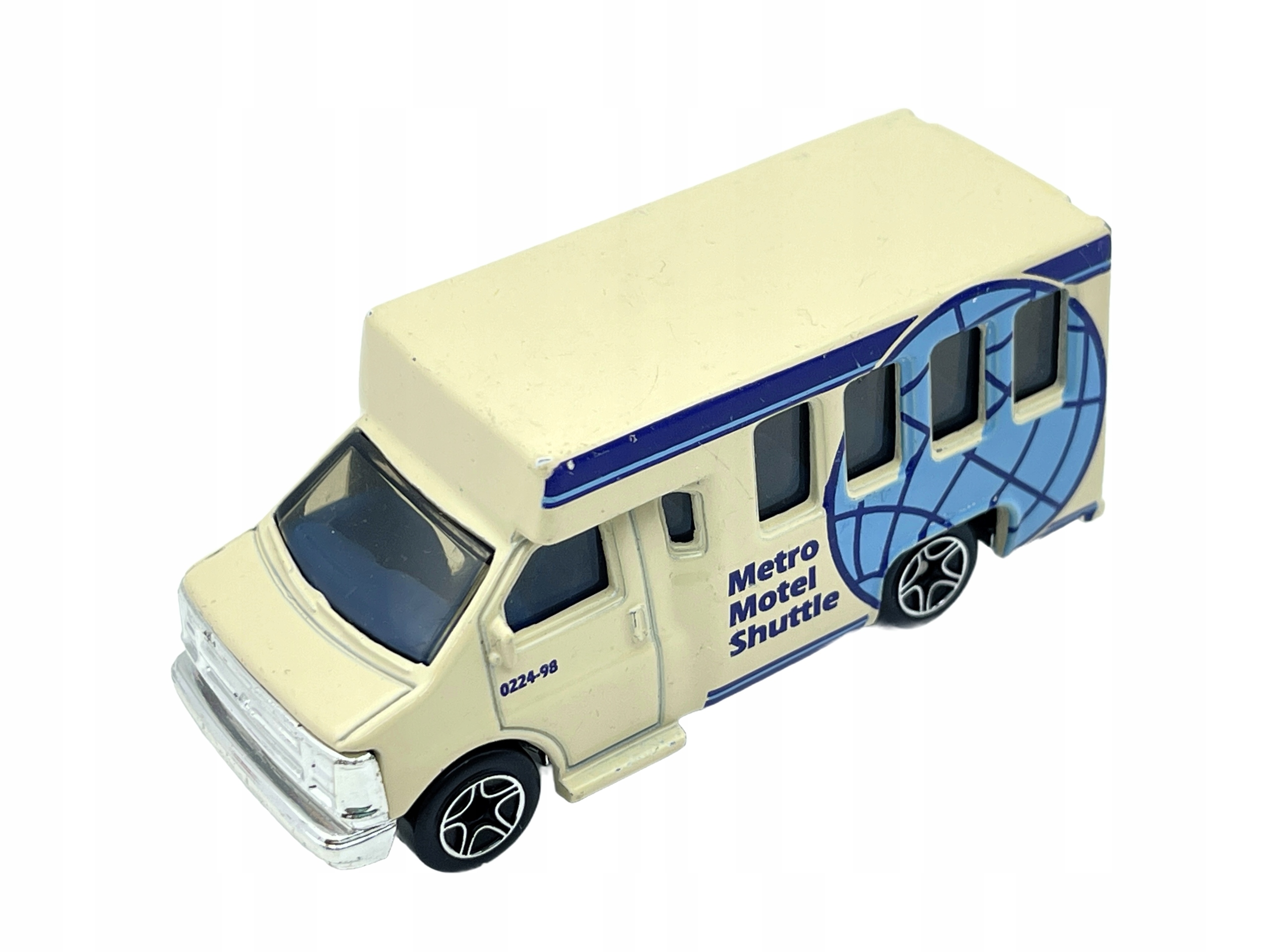 Модель Chevy Transport Bus вдохновлена классическими транспортными автобусами, что подчеркивается бежевыми цветами и принтом «Metro Motel Shuttle». Стиль 90-х проявляется в синих и черных деталях, которые придают ему особый вид. Может принадлежать к серии городских или транспортных машин.