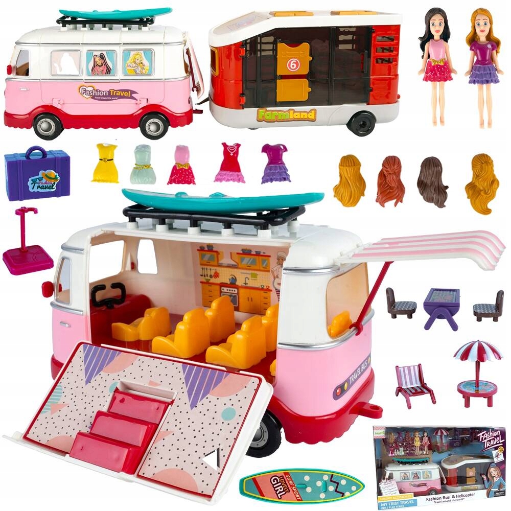 АВТОБУС КЕМПЕР ДЛЯ ЛЯЛЬОК З ПРИЧЕПОМ ЛЯЛЬКИ ОДЯГ ПРИЧІП ДЛЯ КОНЕЙ МЕБЛІ