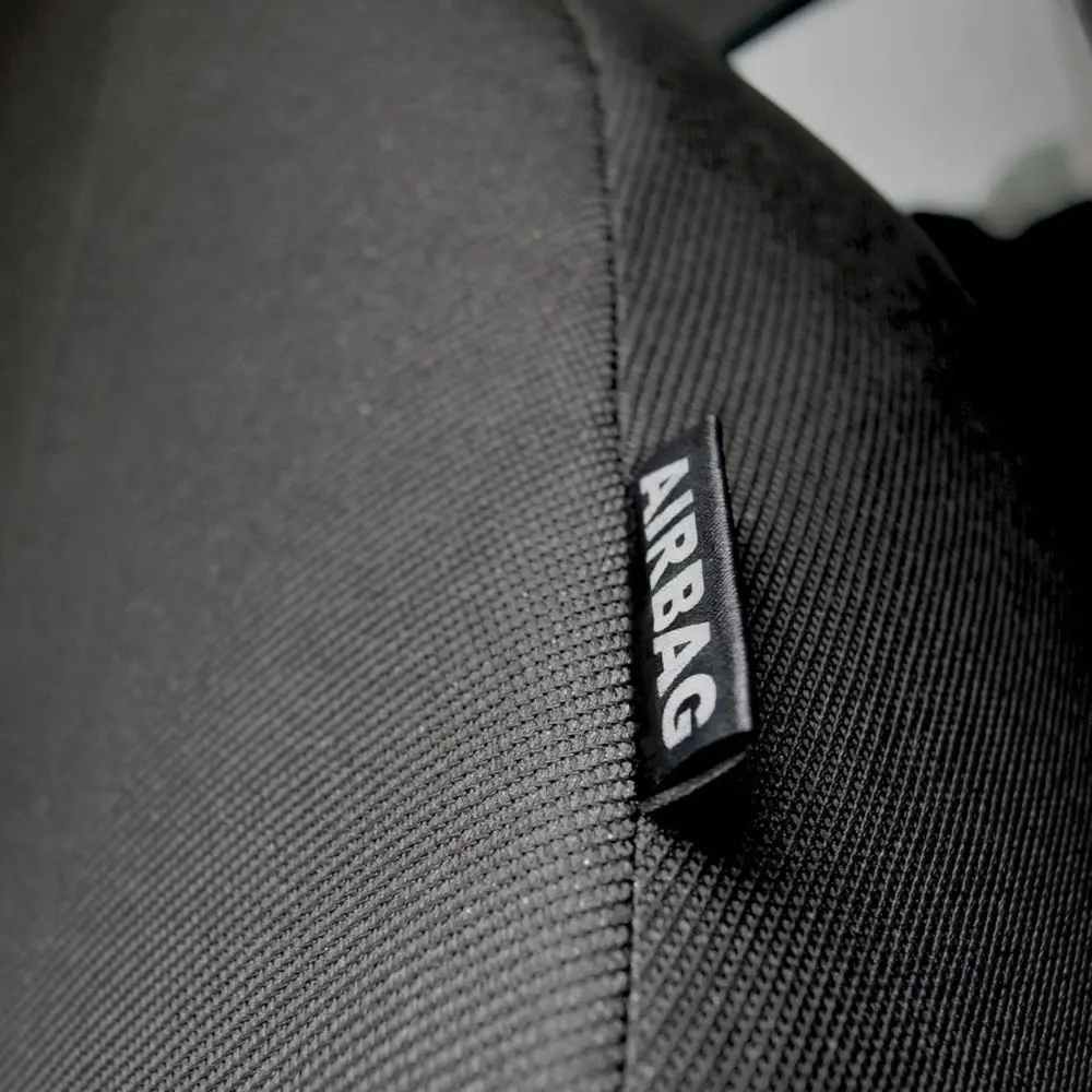 Чехлы оснащены сертифицированным швом AIRBAG, что делает их полностью совместимыми с автомобилями, оборудованными боковыми подушками безопасности в сиденьях, а также с моделями со стандартной конструкцией сидений.