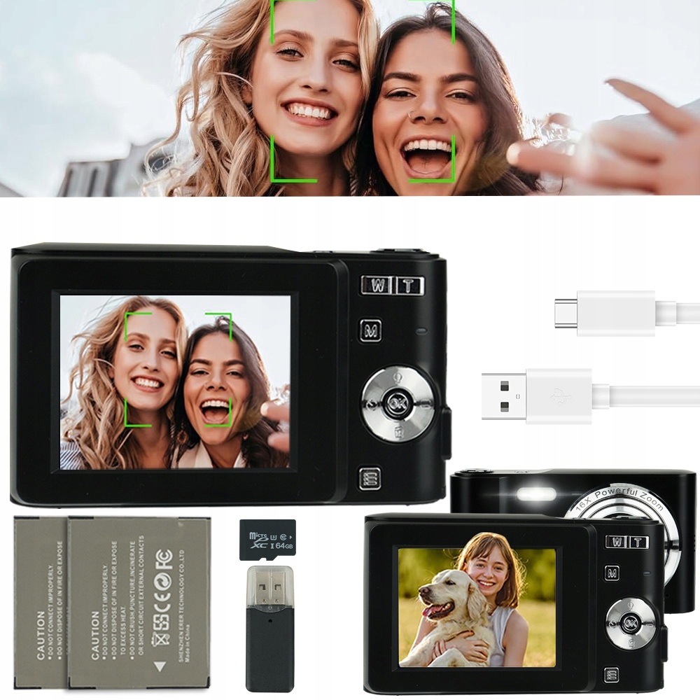 oprócz podstawowych funkcji fotografowania aparat ten oferuje także takie funkcje, jak stabilizacja obrazu, rozpoznawanie twarzy u Wykonywanie zdjęę seryjnych. Это устройство содержит 64G карты памяти. Он не поддерживает карты памяти для детского аппарата или расширения.