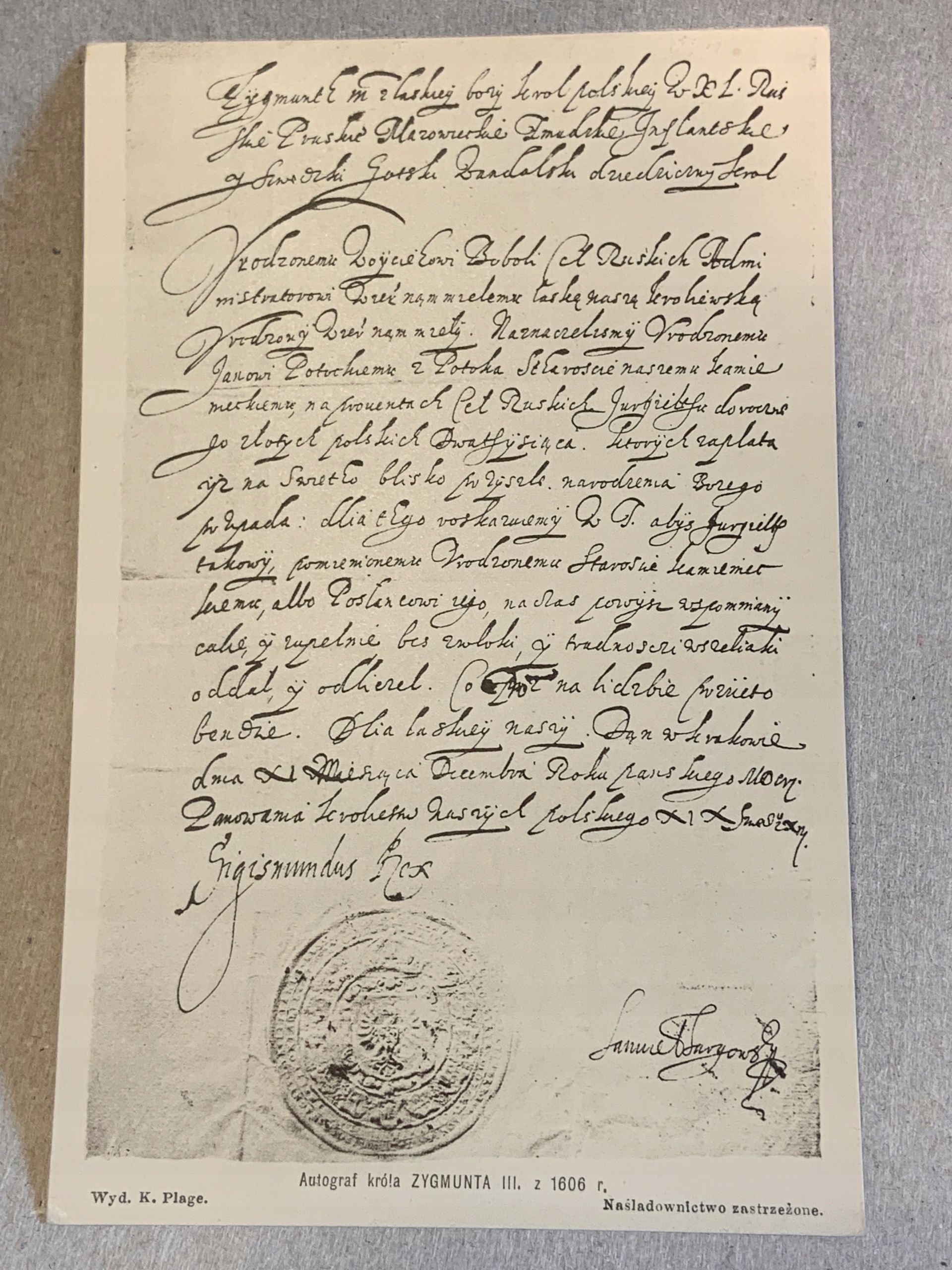 АВТОГРАФ КОРОЛЯ СИГМУНТА III З ЛИСТІВКИ 1606 РОКУ