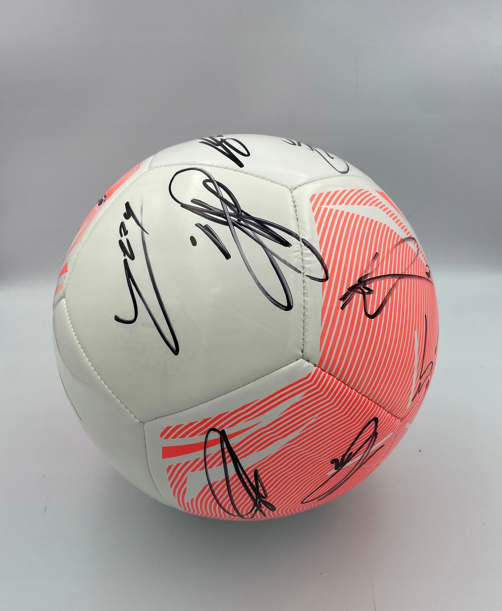 Мяч имеет сертификат подлинности подписей, наклейку с QR -кодом и голограммой, а также печатную печать в элегантном портфеле.
