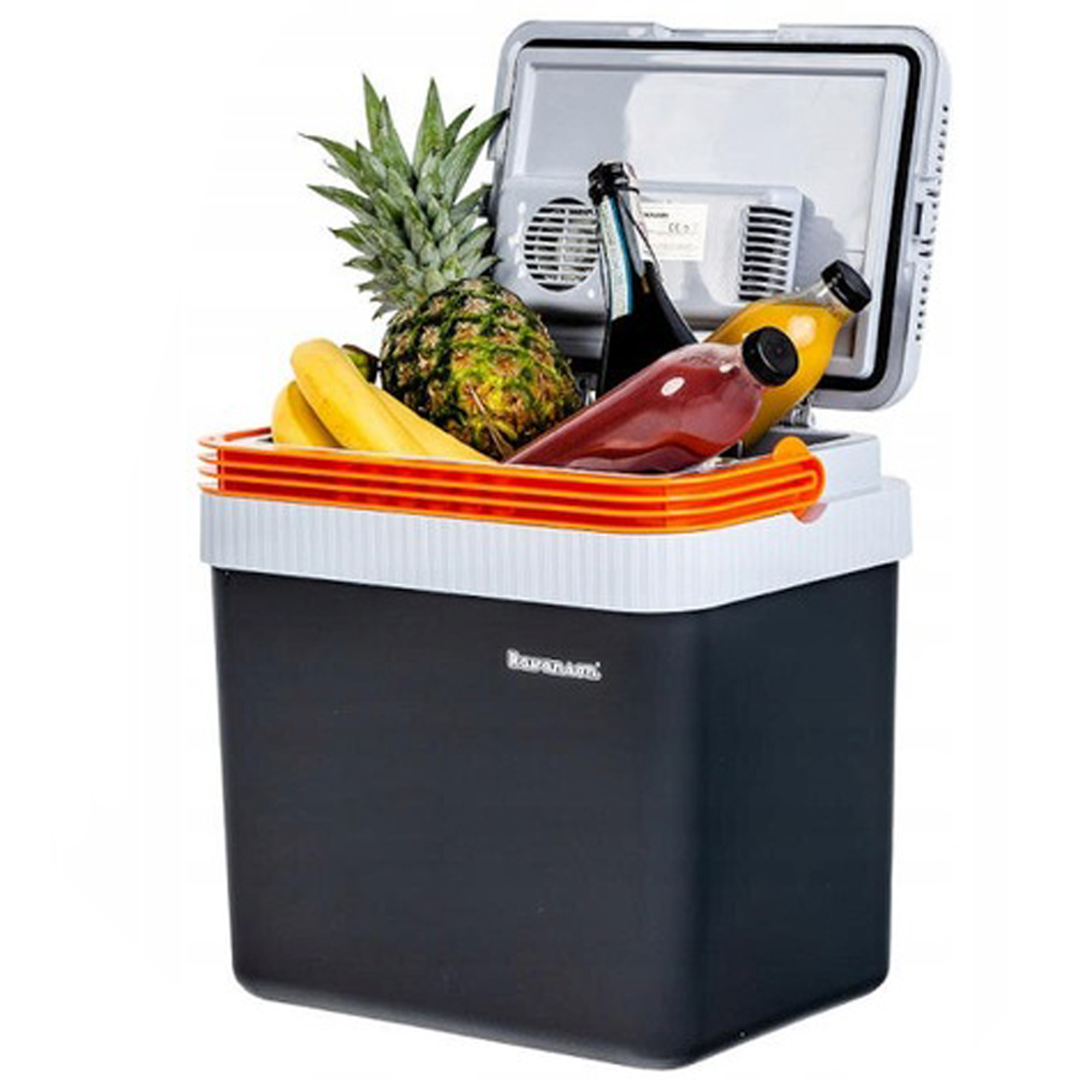 Аппарат емкостью 24 литра, с функцией охлаждения и обогрева. Мощность охлаждения: 45 Вт и мощность обогрева: 40 Вт. Он оснащен двойным вентилятором в крышке и эффективной изоляцией из пенополиуретана. Холодильник питается от автомобильного зарядного устройства 12 В или от сети. Длина кабеля: 2,5 м. Устройство позволит транспортировать напитки или продукты питания в целости и сохранности, в охлажденном или подогретом виде. Имеет удобную складную ручку для удобной переноски. Холодильник идеален для поездок.