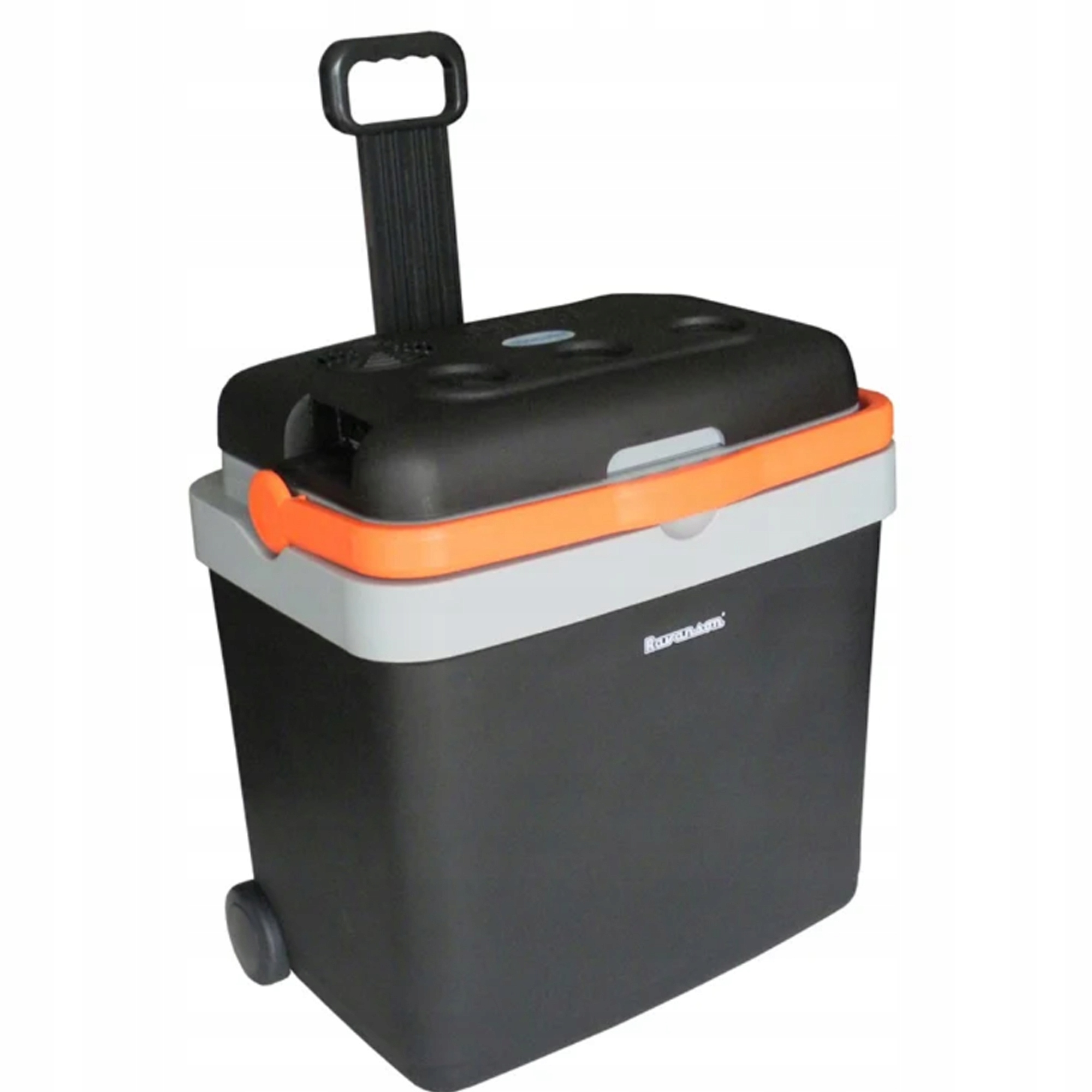 Дорожный холодильник объемом 28 л — идеальное решение для поездок и путешествий. Его можно использовать как во время транспортировки благодаря питанию через гнездо прикуривателя в автомобиле, так и в помещении. Холодильник работает в диапазоне от 15 до 18 градусов,
