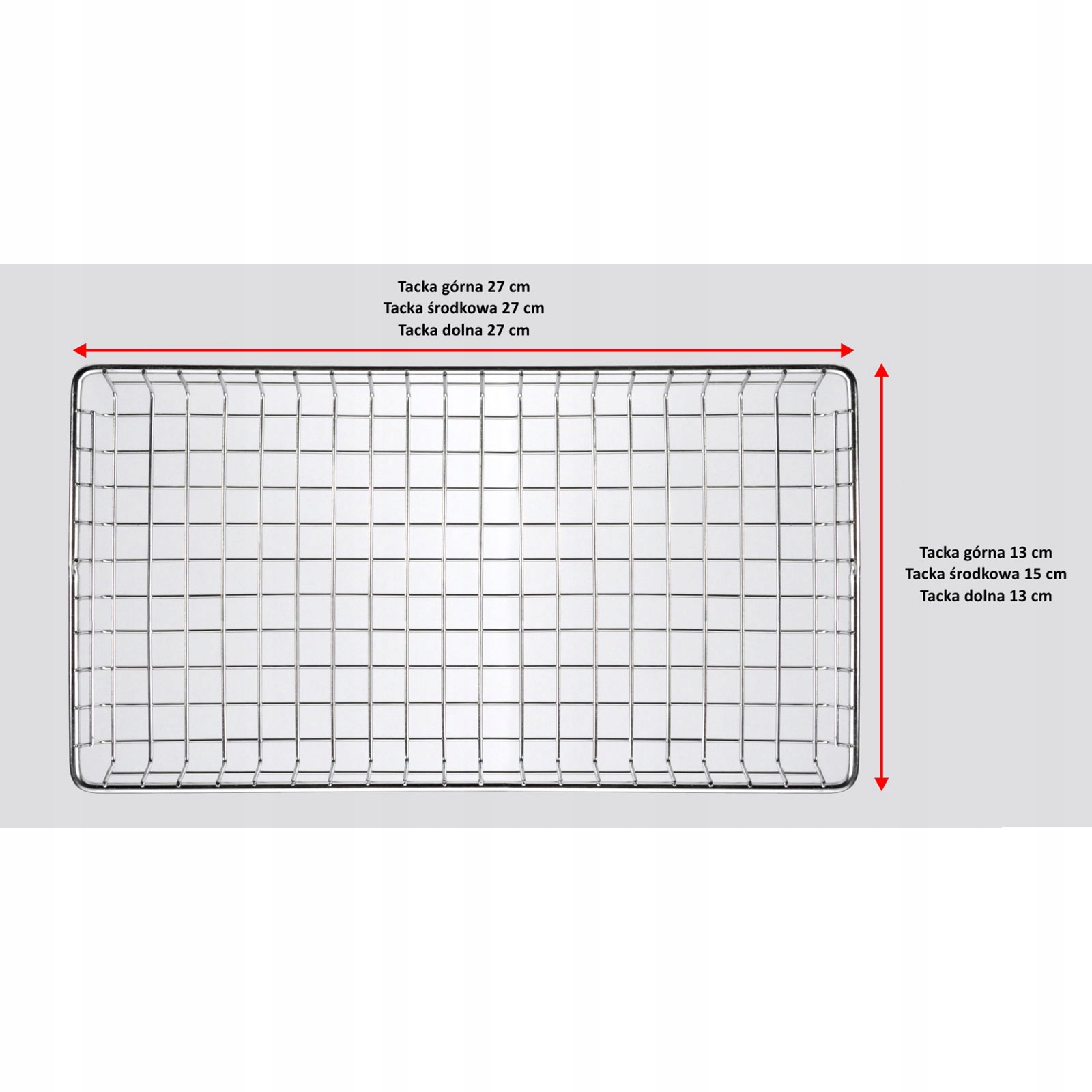 - Размеры противня: верхний: 13 x 27 см | средний: 15 х 27 см | внизу: 13 x 27 см.