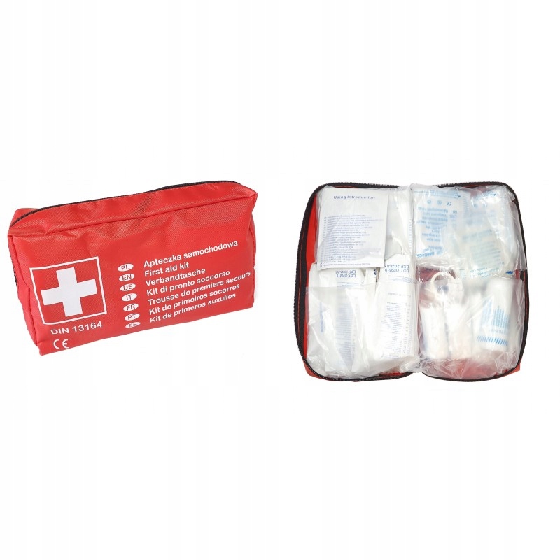 Аптечка первой помощи DIN 13164 PKWiU 32.50.5. Автомобильная аптечка. Его можно использовать где угодно и в различных условиях. Содержит самые необходимые перевязочные материалы, необходимые во время путешествия.