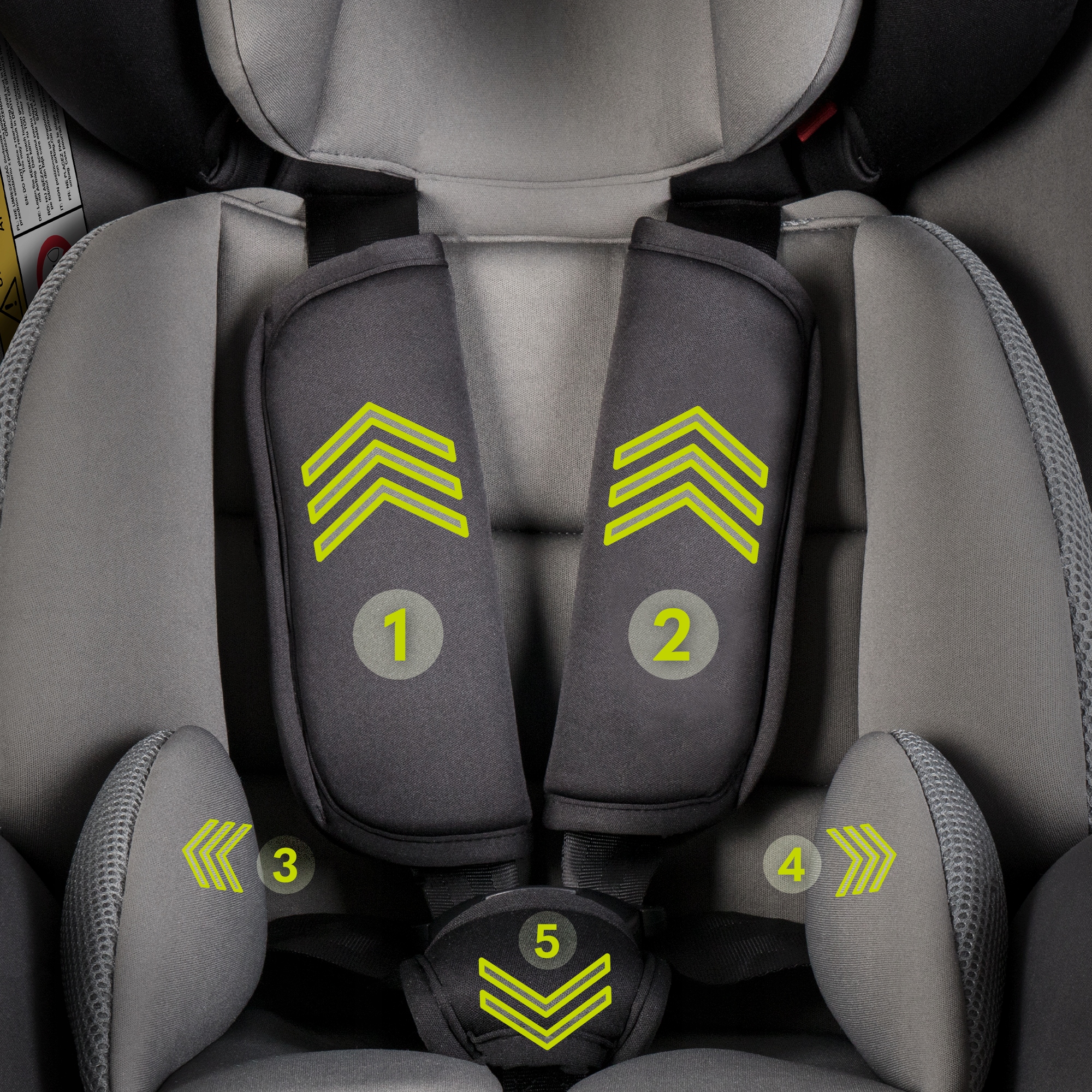 ✔️ Встроенная регулировка высоты подголовника с ремнями - позволяет одним движением отрегулировать сиденье под рост ребенка