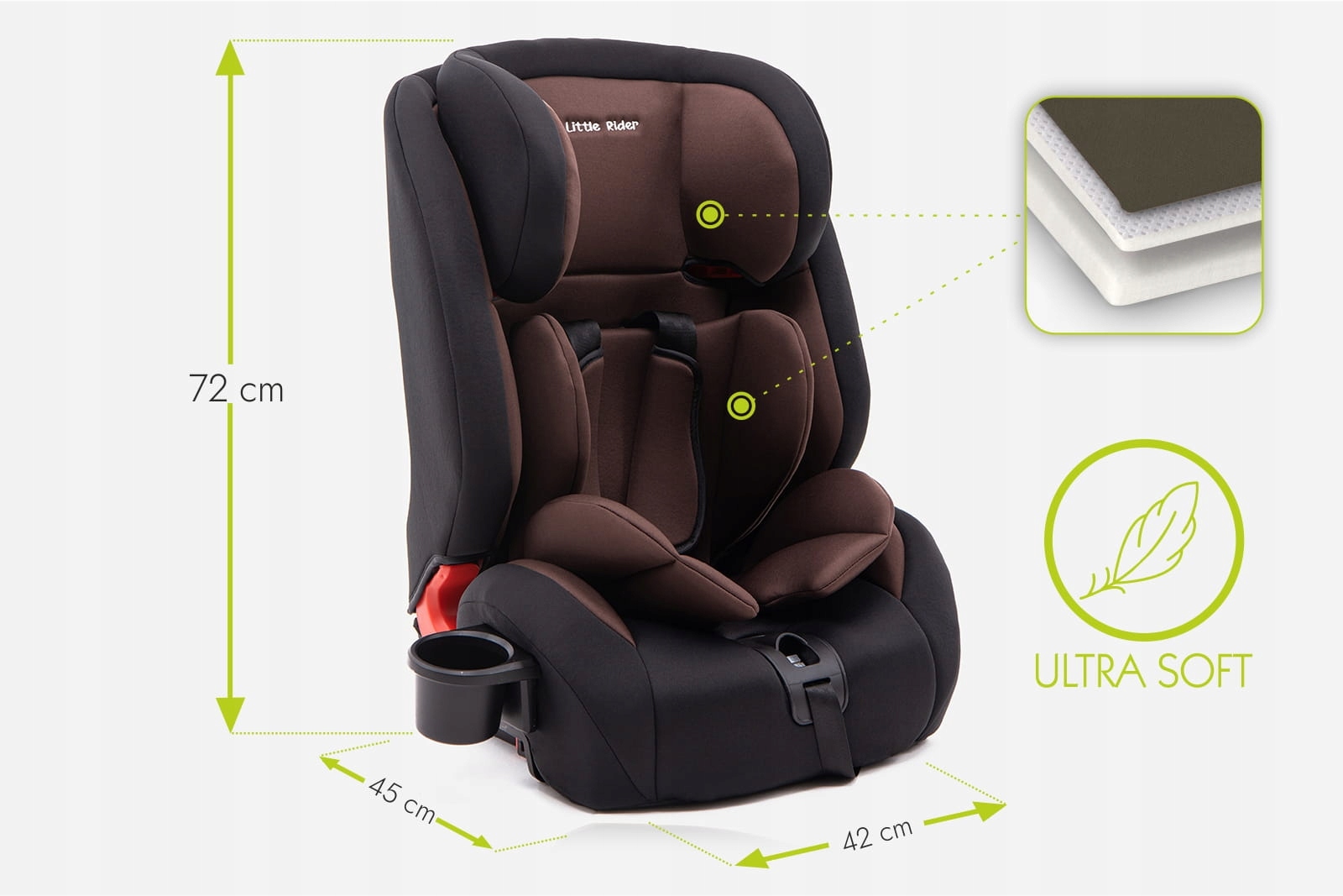 Сертифицированное автокресло LITTLE RIDER предназначено для детей трех весовых групп: 1 (9-18 кг), 2 (16-25 кг) и 3 (22-36 кг). Сиденье оснащено креплением ISOFIX + Top Tether.