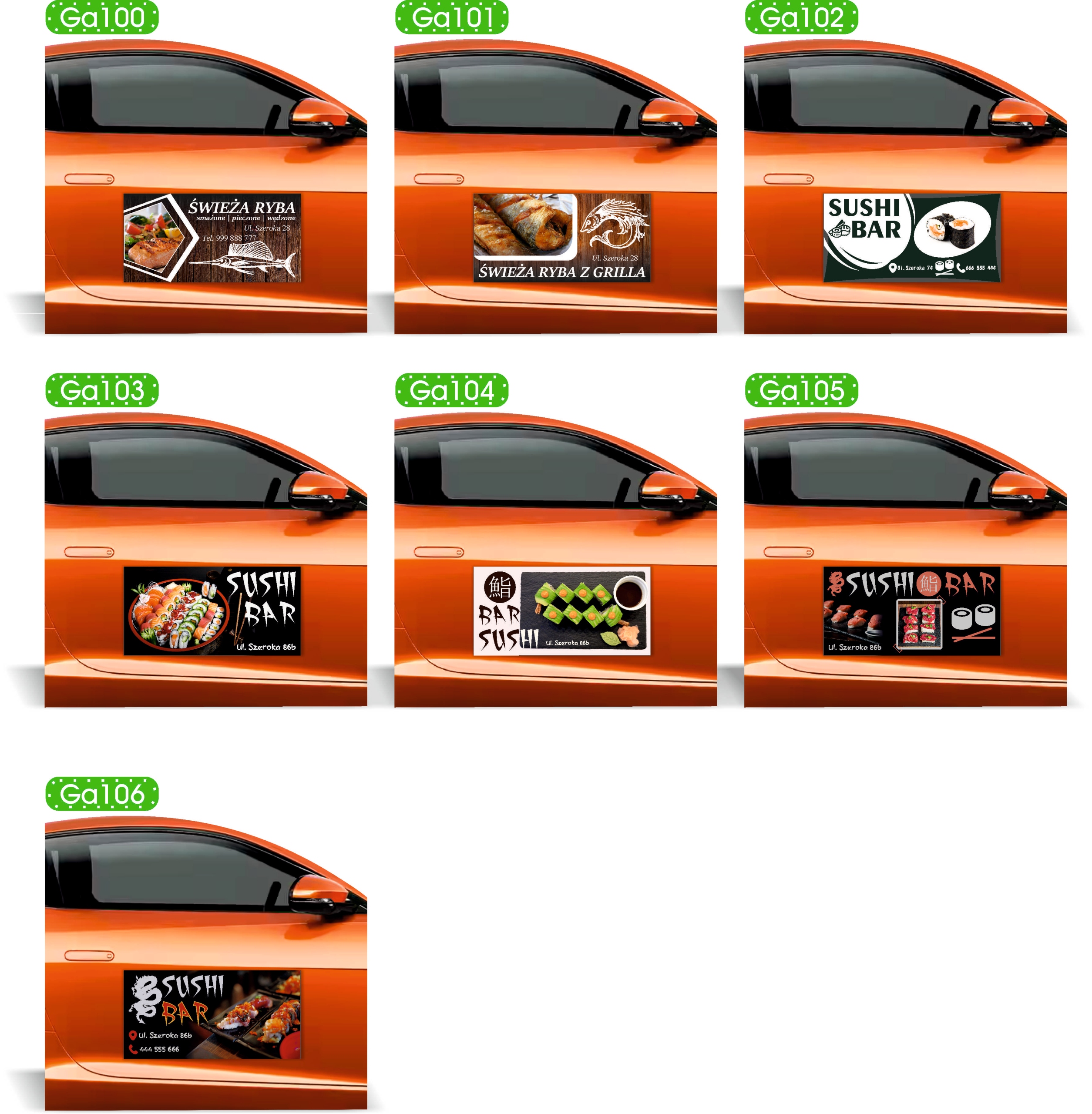 Магнитная реклама 60х30 см с готовыми графическими рисунками.