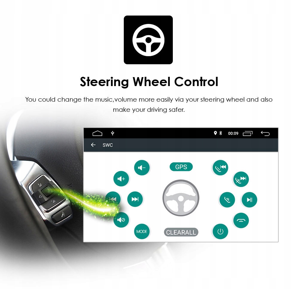 Входящий в комплект декодер CAN-кода позволяет соединить магнитолу с мультимедийными кнопками на руле — благодаря этому вы получаете полный контроль над устройством, не отрывая от него рук.