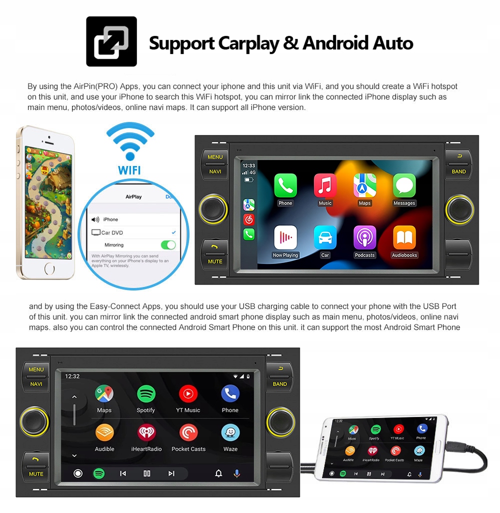- Carplay — Android и iOS, изображение с телефона на экране магнитолы