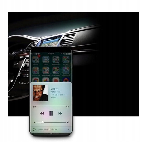 Наша магнитола имеет вход AUX на передней панели, поэтому мы можем подключить смартфон и слушать любимые песни или разговаривать через автомобильные динамики. р>