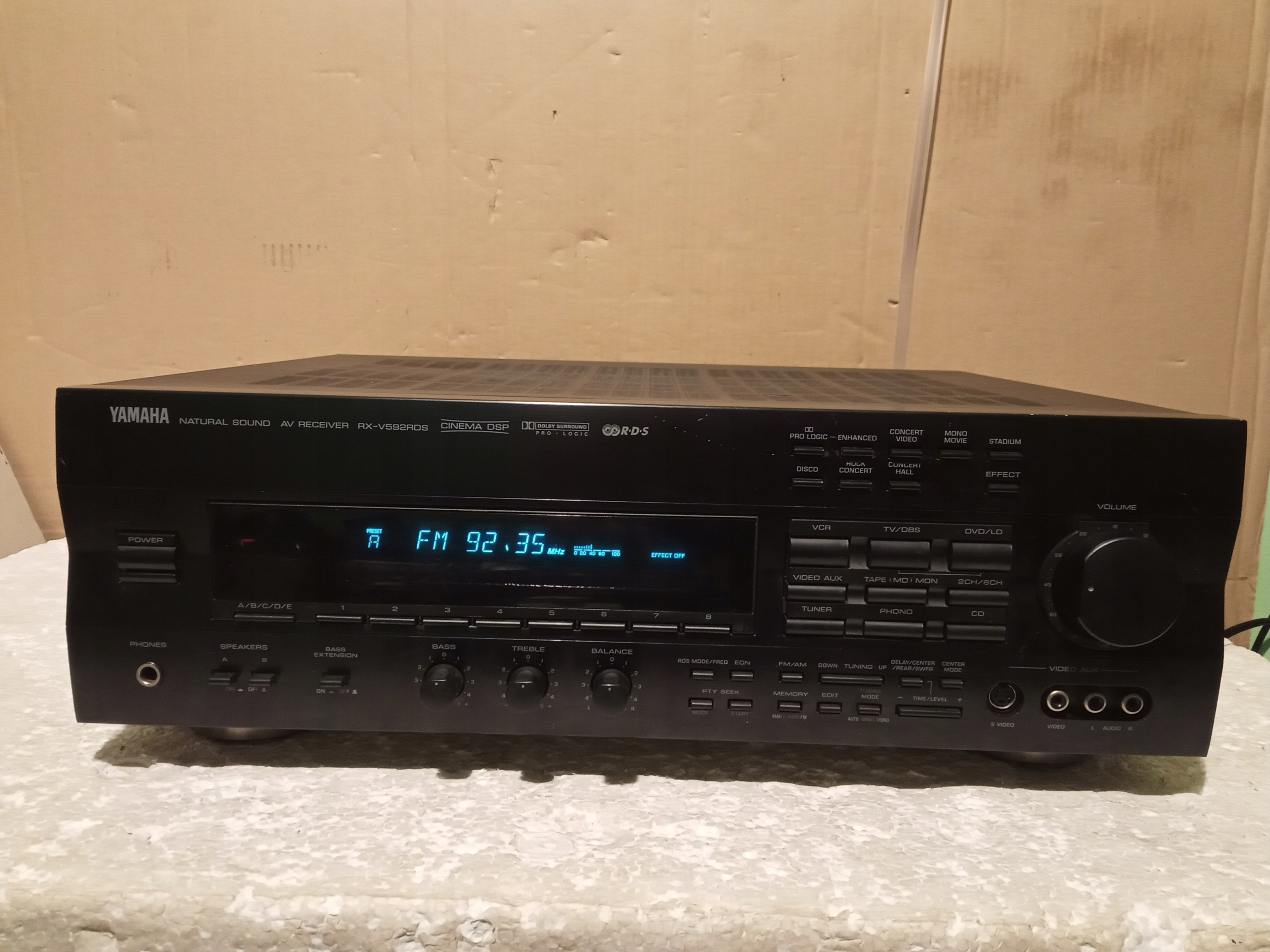 Б/у и рабочий Усилитель-тюнер: YAMAHA RX-V592RDS, без пульта. Тюнер плохо принимает, поэтому нужна мощная антенна и дальность действия. Одна ножка болтается, а ручка громкости слегка изогнута, из-за чего при повороте она слегка трётся. В остальном все в порядке.
