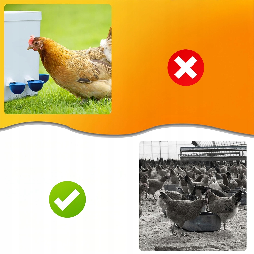Чашки воды для цыплят остаются чище, чем при использовании впадины, и их легко чистить, просто слить воду в чашку, чтобы повысить эффективность размножения. Цыплята, индюки и утки всегда имеют источник свежей и чистой воды, а проницаемая птица должна обеспечить стадо гидратации и здоровья.