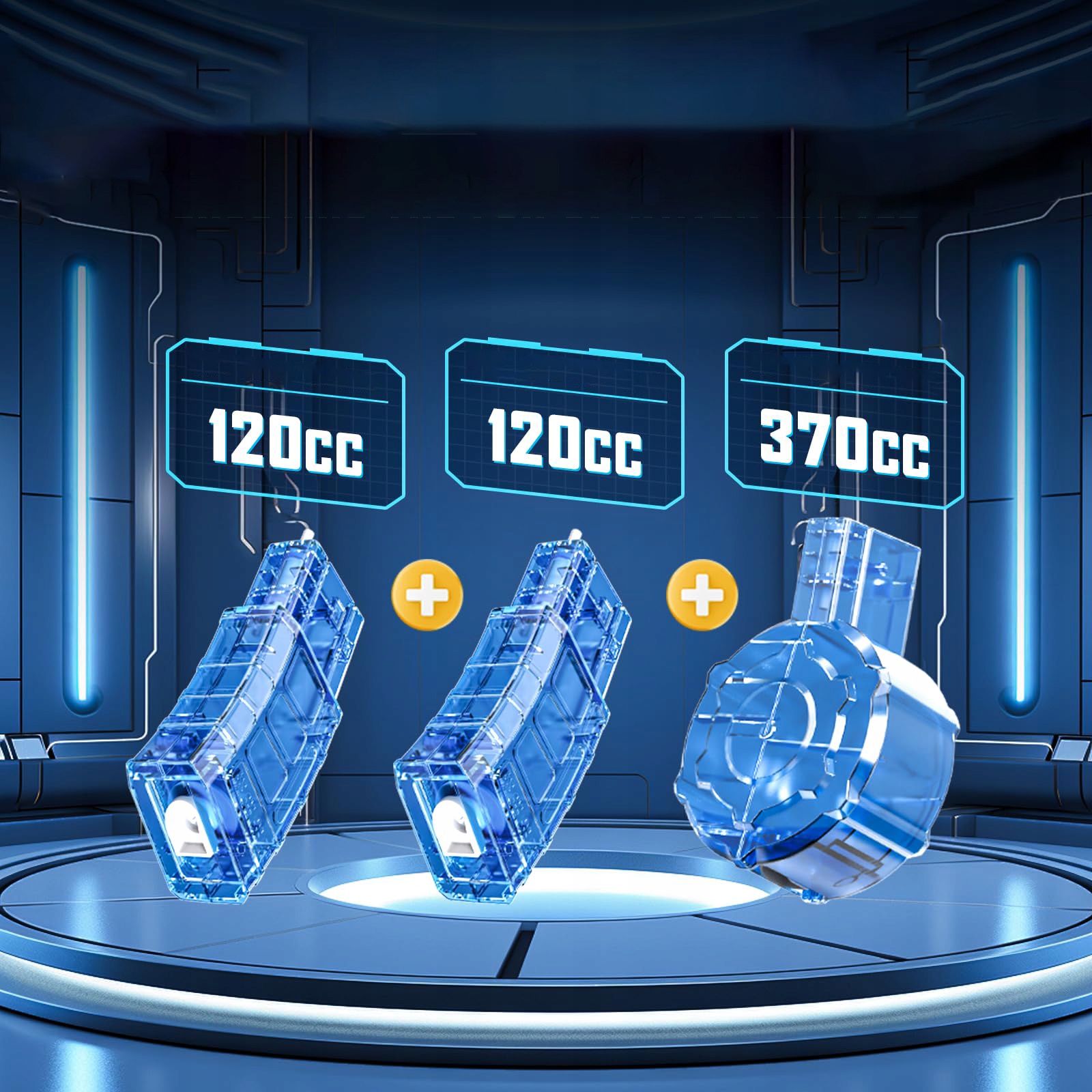 🔫 Оснащен 3 резервуарами для воды (370 куб.см + 120 куб.см + 120 куб.см), обеспечивающих достаточно воды, чтобы обеспечить длительную игру.