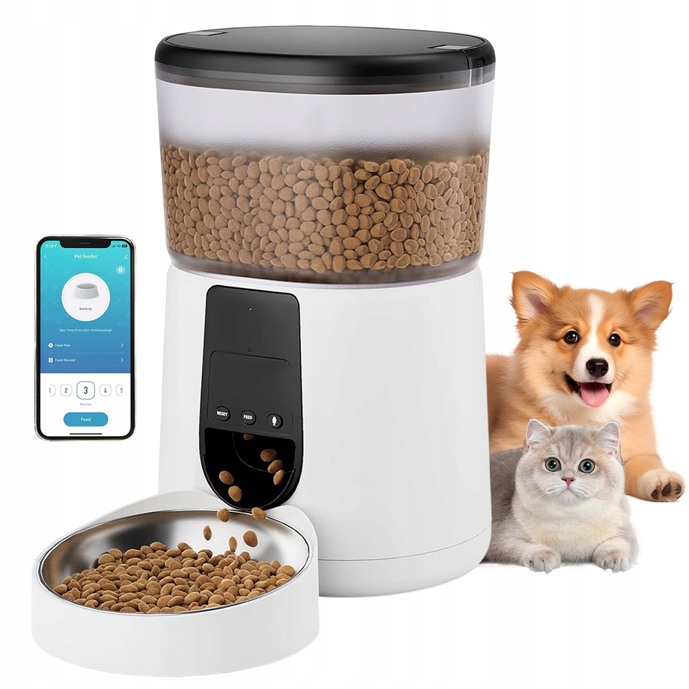 📱【 Удаленный контроль с использованием】】 Application: b> Cat Feeding Feeder удаленно с использованием приложения (только Wi-Fi 2,4 г). Вы можете кормить своих домашних животных из любого места и в любое время, используя мобильный телефон (Android и iOS) и отслеживать регистр кормления для управления управлением. Вы можете установить до 10 приемов пищи в день для 1-12 порций на еду, 7 г ± 2 г на порцию. Устройство можно контролировать из нескольких мобильных устройств. животные Встроенный в мешок с сушильным агентом делает пищу свежей и хрустящей. Чаша из нержавеющей стали, предназначенная для контакта с пищей, обеспечивает здоровое и гигиеническое кормление и защищает домашних животных от прыщей подбородка. Рекомендуется использовать как батарею, так и адаптер, чтобы питомец не пропустил еду даже в случае сбоя питания. После восстановления источника питания план кормления не должен быть снова установлен. и аксессуары не содержат BPA. Крышка танка, танк и миска для собачьего корма могут быть удалены, чтобы полностью чистить. Усовершенствованная структура автоматического вращения и конструкции наклонной поверхности выхода решает проблему засорения. И удерживайте кнопку записи на фидере, чтобы начать запись 10-секундного голосового сообщения. Животное может услышать вашу запись во время выпуска пищи, как будто вы были рядом, и поощряет ее поесть