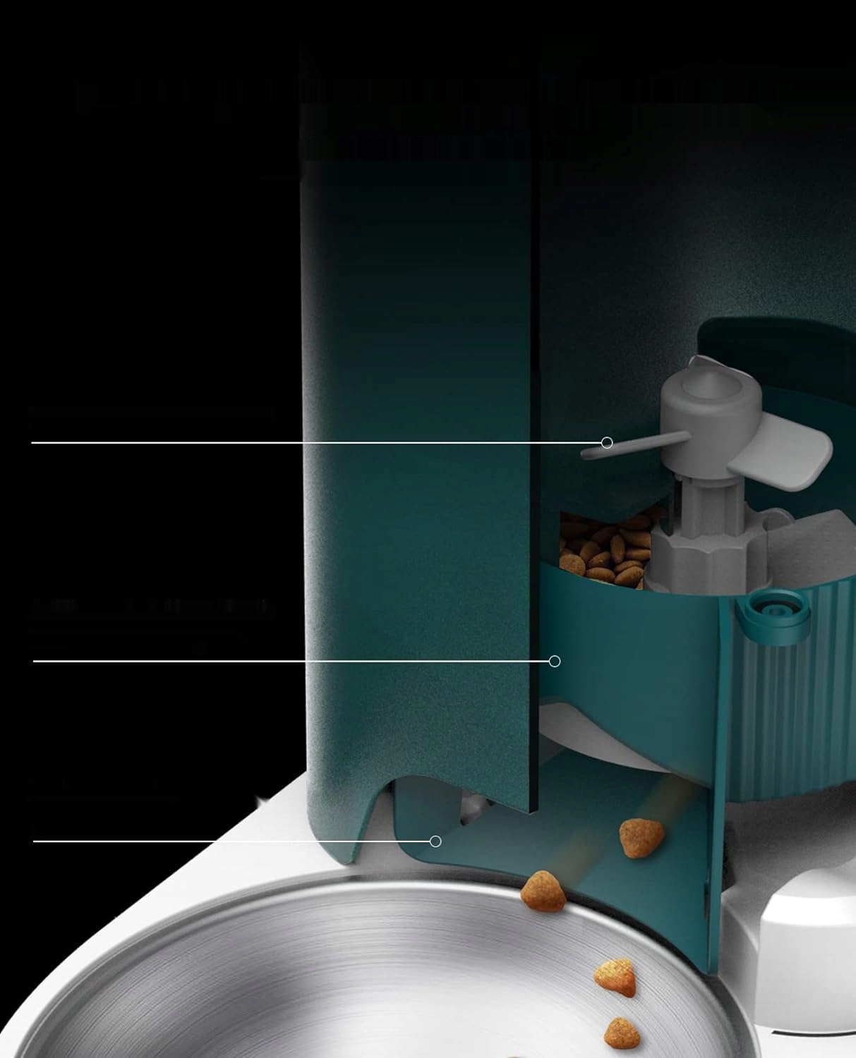Устройство оснащено резиновыми прокладками , защищающими от плесени и влаги, встроенной коробки с поглотителем влаги для сушки , и устройство напоминает вам регулярно заменить поглотитель. Выход для еды закрывается автоматически после каждой администрации, чтобы обеспечить сухую пищу.