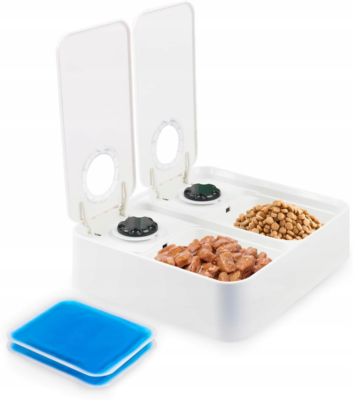 Автоматический кормление для кошек для лап с 2 приемами пищи, сухим и влажным дозатором пищи с 48-часовым таймером, охлаждающей вставкой в съемочной площадке, вы можете мыть в посудомоечной машине собаки h2>
