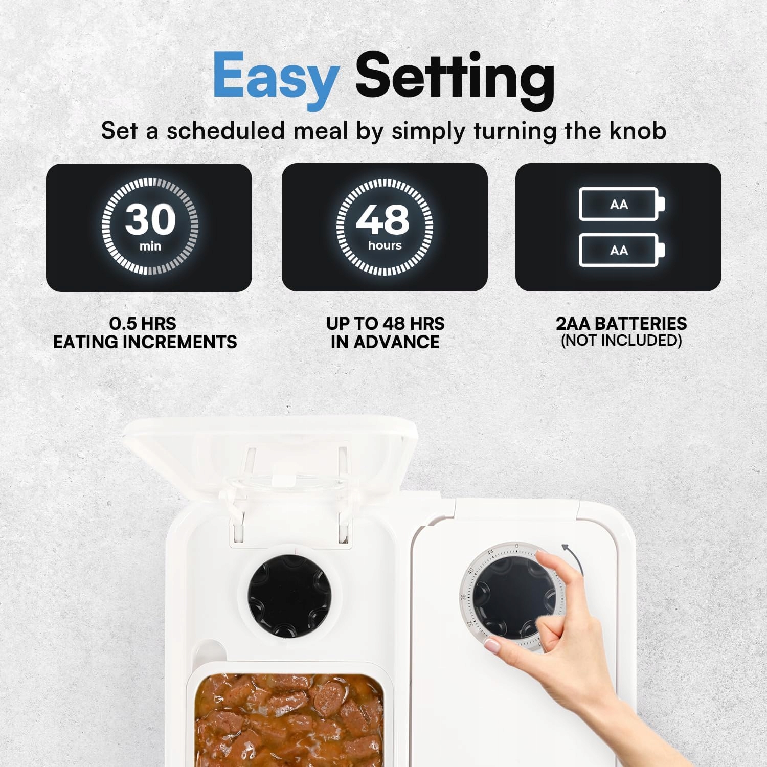 Внимание! Продукт открылся в магазине, чтобы проверить техническое состояние. Поврежденная упаковка. Идеальное решение для людей, которые ведут интенсивный образ жизни, потому что оно гарантирует, что ваш друг будет получать еду вовремя, даже если вас нет дома, обеспечивая душевное спокойствие и комфорт. : Этот кормушка изготовлен из BPA -пластика и оснащена охлаждающей подушкой, которая поддерживает свежесть блюд. Он содержит до 10 унций сухой или влажной пищи, благодаря которой ваш питомец сможет каждый раз наслаждаться вкусной и аппетитной едой. АА батареи (не включены). Просто заполните лотки, установите таймер, и он готов. Съемные лотки могут быть промыты в посудомоечной машине, что облегчает очистку. Он идеально подходит для животных с тенденцией к перееданию. Продвигайте более здоровые привычки питания, контролируя размер порции, поддерживая общую скважину от вашего питомца. Благодаря ему, ваш питомец будет заполнен и удовлетворен, даже когда вы находитесь за пределами дома. Это ценное дополнение к повседневной помощи животному