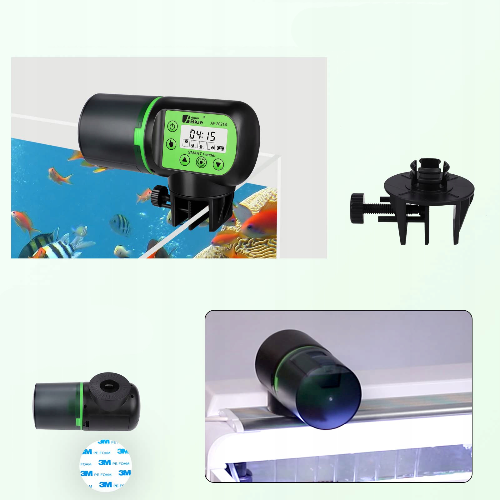 【Два способа крепления】: аквариумную кормушку можно прикрепить к краю аквариума с помощью регулируемых зажимов или к крышке аквариума с помощью прилагаемой наклейки. Автоматическая кормушка для аквариума позволяет разумно кормить рыб и черепах в выходные и праздничные дни.