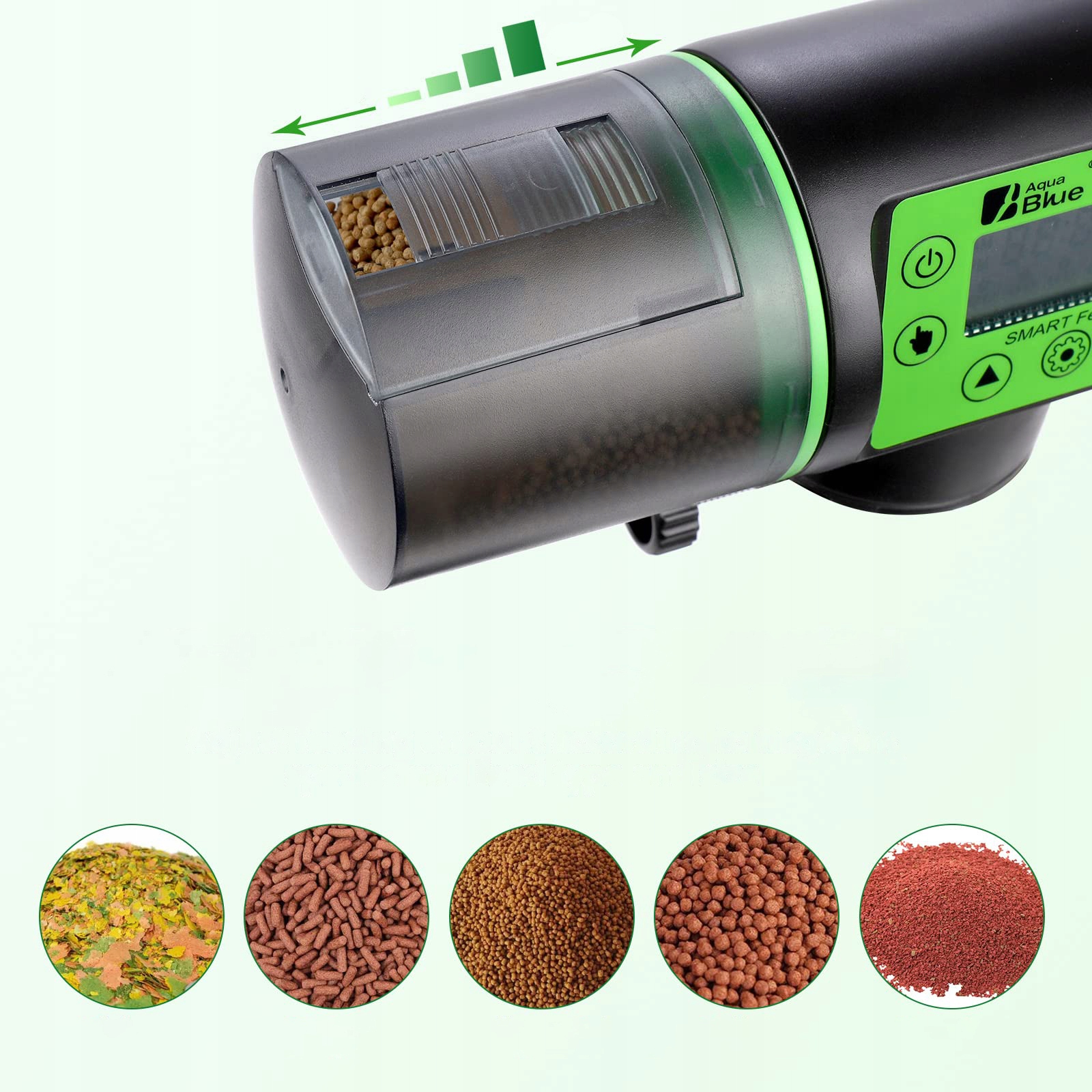 【Большая емкость 200 мл】: Автоматическая кормушка для аквариума имеет емкость 200 мл и подходит для различных кормов для рыб, таких как хлопья, гранулы, порошки и полоски. Отрегулируйте количество корма с помощью ползунка.