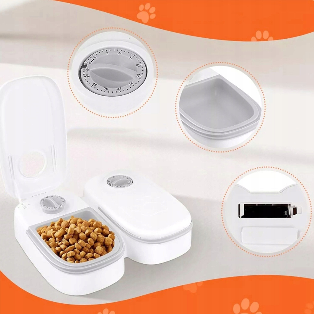 Каждая чаша в течение некоторого времени -Контролируемая кормляющая машина обеспечивает достаточно места для размещения до 350 мл пищи. Благодаря этой двойной пищевой системе вы можете приготовить два отдельных блюда, что идеально, если у вашего животного есть специальные потребности в питании или если у вас есть несколько домашних животных.
