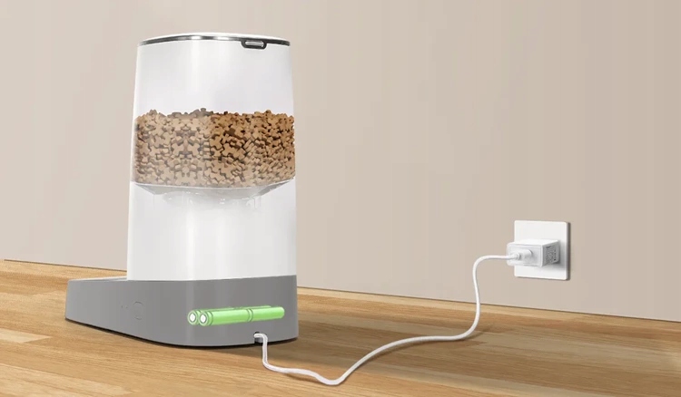 Двойная конструкция позволяет поставлять устройство электричеством или батареями в случае неожиданного сбоя питания. Контейнер имеет функцию хранения памяти , когда сеть недоступна, поэтому план кормления реализован как обычно, и нет необходимости беспокоиться о том, что животное не будет голодным.