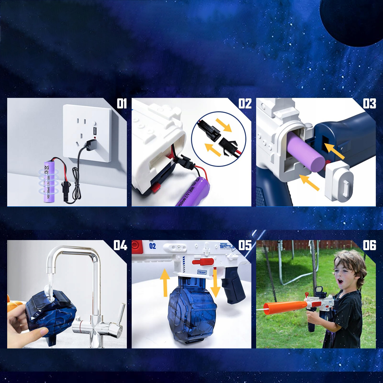 - Попрощайтесь с добавлениями в середине потока и отключения питания! Наш автоматический водный пистолет оснащен 3 резервуарами для воды (370 куб. См+120 куб. См+120 куб. См) с достаточным количеством воды, чтобы обеспечить беспрецедентный игровой опыт.