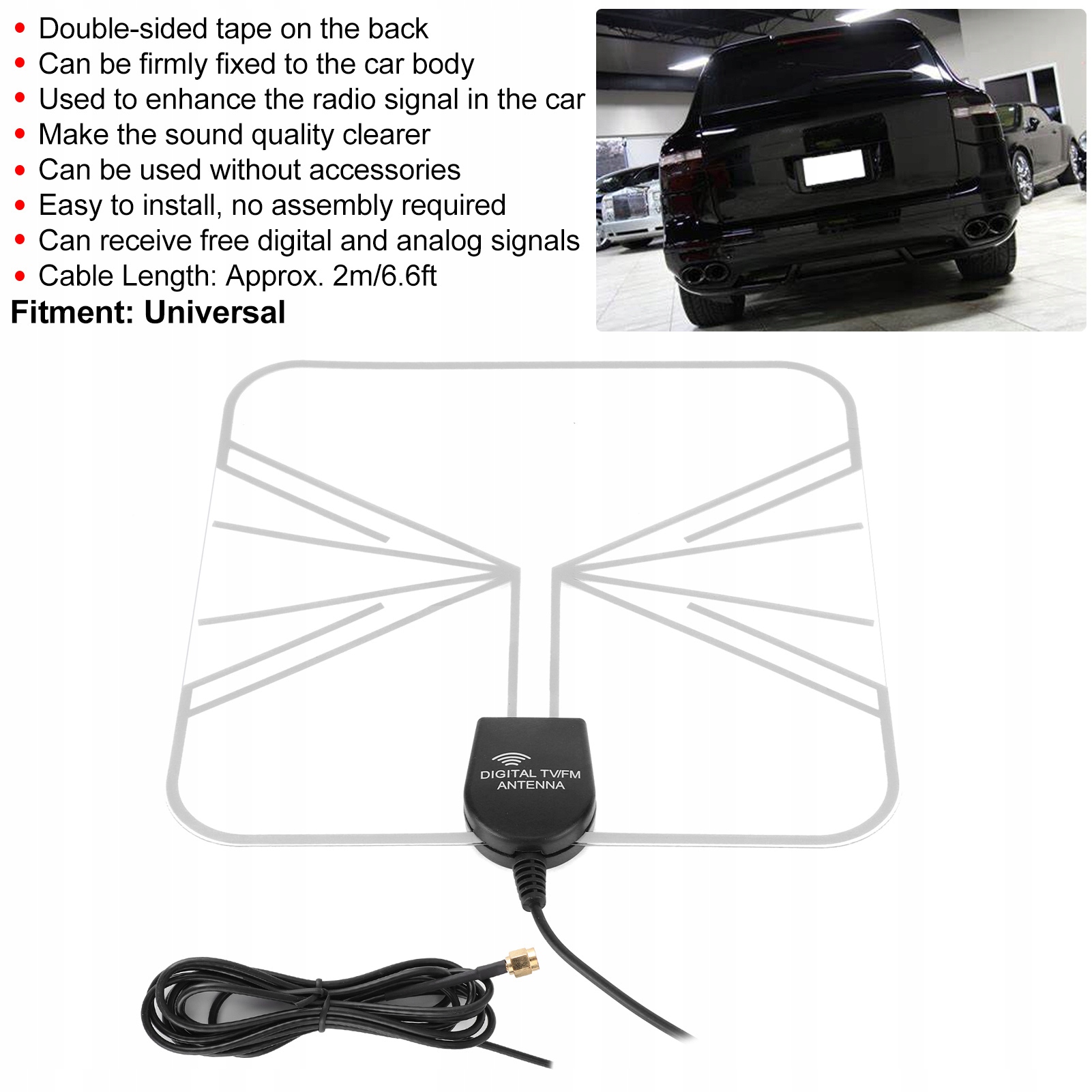 1. Универсальный тип, подходит для всех моделей, вы можете использовать его с уверенностью, не беспокойтесь о проблеме несоответствия. 2. Благодаря двусторонней ленте сзади его можно надежно прикрепить к кузову автомобиля, и его нелегко уронить. 3. В основном используется для усиления радиосигнала в автомобиле, чтобы сделать качество звука более четким. Подключите другой конец к радиоблоку. 4. Он может принимать бесплатные цифровые и аналоговые сигналы, что более удобно, быстрее и практично. 5. Его можно использовать без аксессуаров, он прост в установке и не требует сборки.