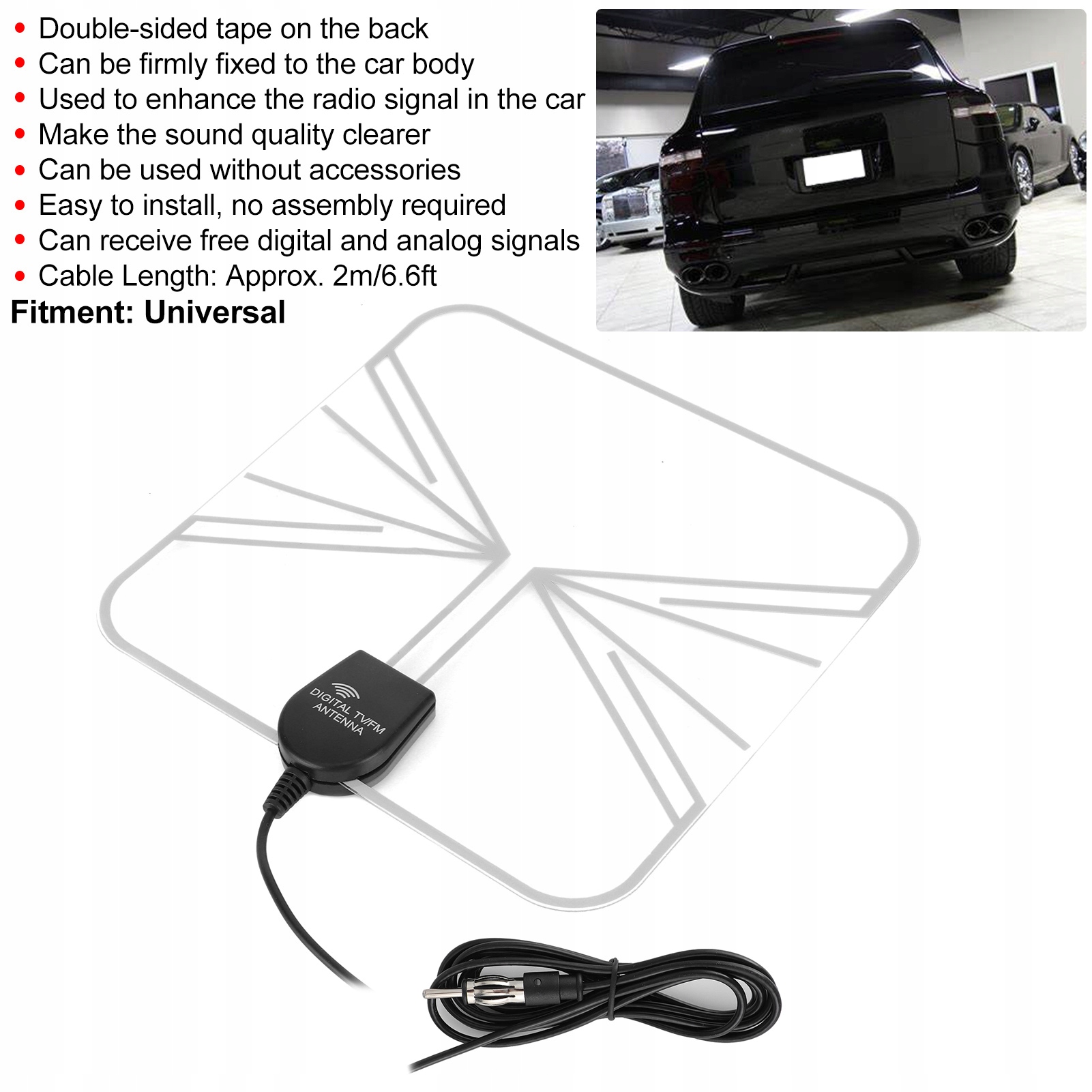 1. Универсальный тип, подходит для всех моделей, вы можете использовать его с уверенностью, не беспокойтесь о проблеме несоответствия. 2. Благодаря двусторонней ленте сзади его можно надежно прикрепить к кузову автомобиля, и его нелегко уронить. 3. В основном используется для усиления радиосигнала в автомобиле, чтобы сделать качество звука более четким. Подключите другой конец к радиоблоку. 4. Он может принимать бесплатные цифровые и аналоговые сигналы, что более удобно, быстрее и практично. 5. Его можно использовать без аксессуаров, он прост в установке и не требует сборки.