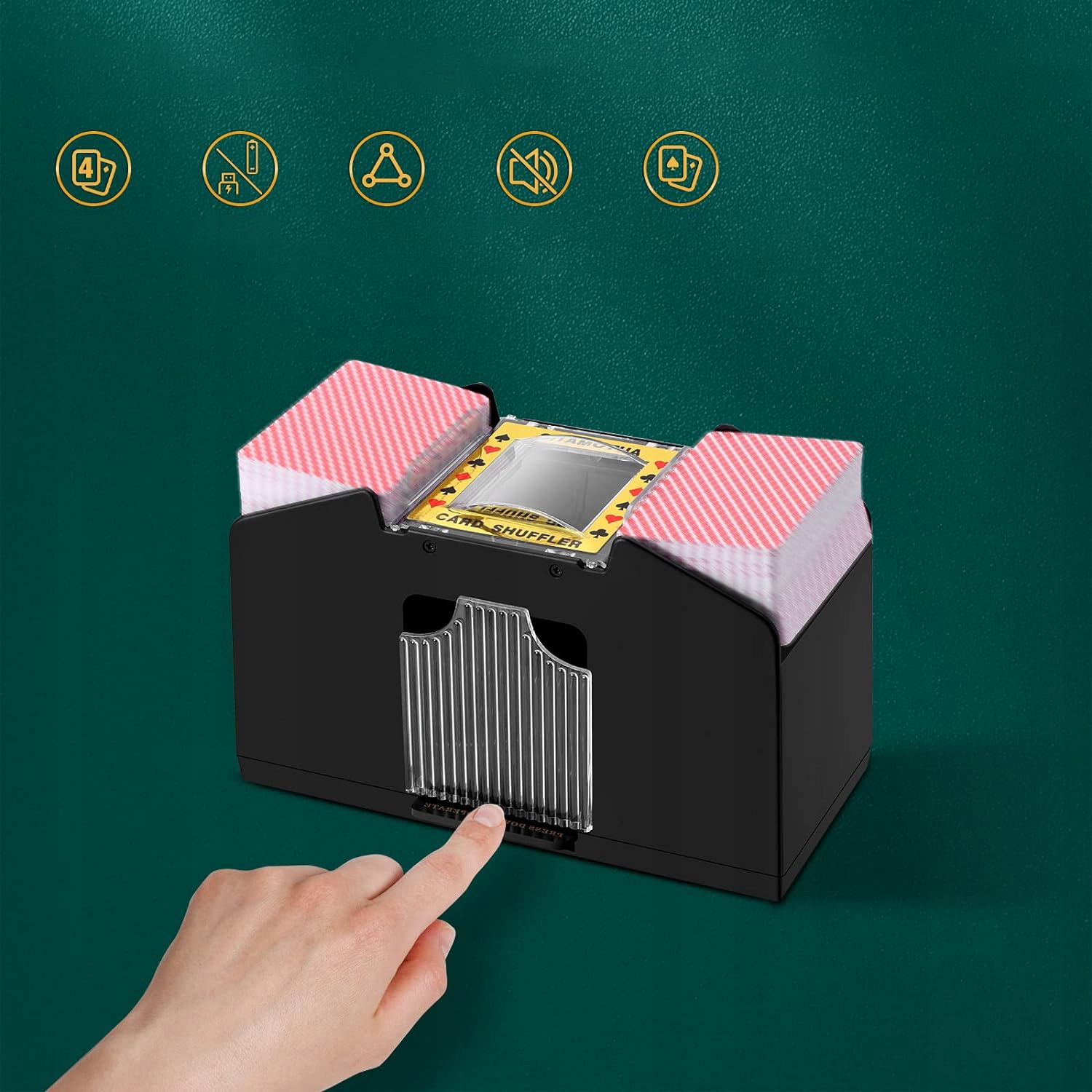 🃏Инструмент для карточной игры: Наш продукт может смешивать 4 колоды игральных карт одновременно. Электрический покерный автомат полностью освободит ваши руки и станет идеальным инструментом для любителей покера. Вы можете взять его с собой на работу, на семейный отдых или в поход и позволить ему автоматически играть в покер.