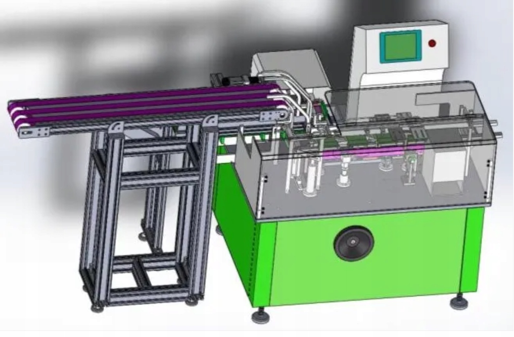 Полностью автоматическое устройство, разработанное для упаковочных продуктов в картонных коробках. Модель адаптирована к продукту клиента, то есть стеклянные бутылки. Машина складывает коробку, надевает бутылку в его интерьер и закрывает ее. ПЛК -контроллер и сенсорный экран Siemens.