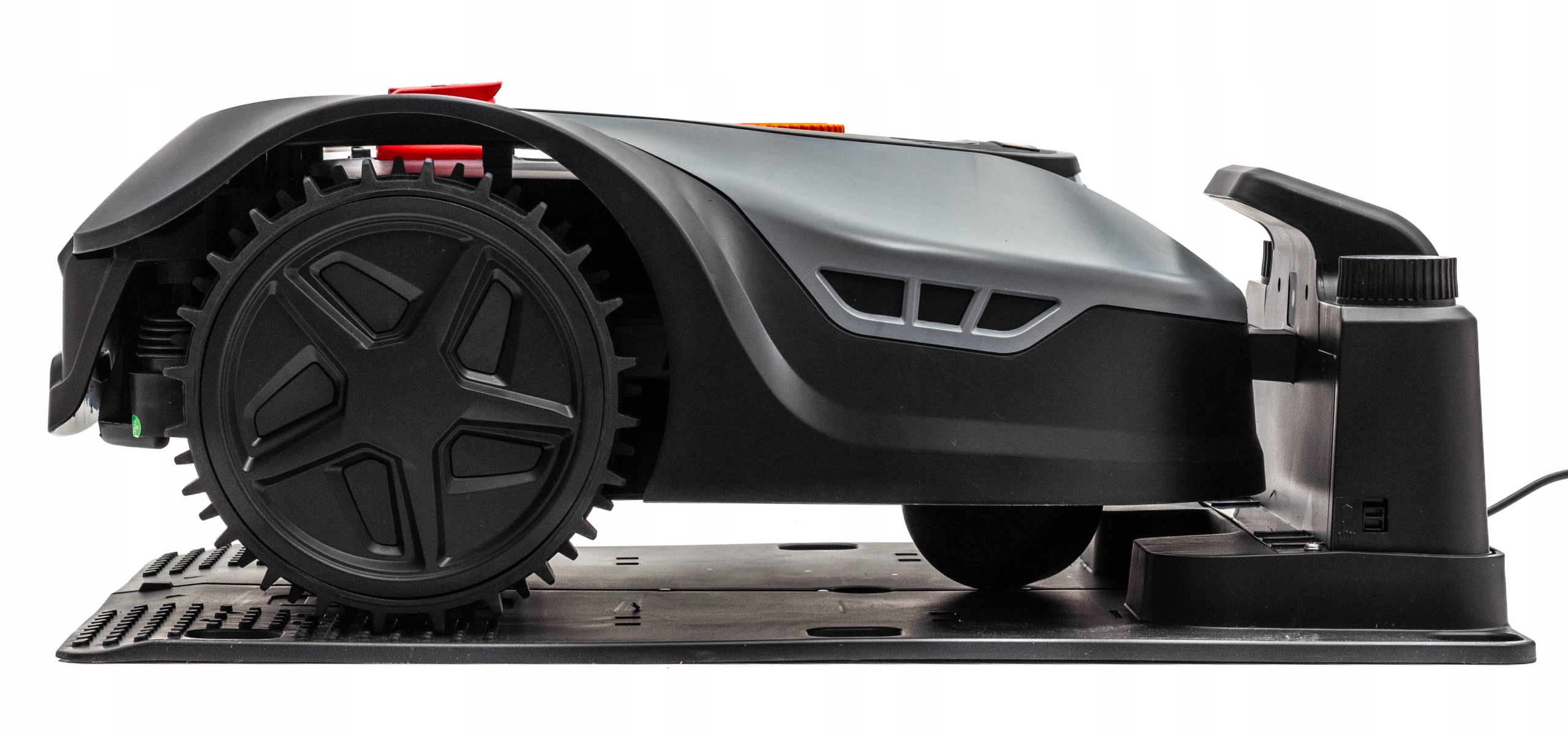 - Функция автоматической зарядки. Газонокосилка знает, когда следует зайти на зарядную станцию. Станция оснащена системой предотвращения столкновений, которая предотвращает застревание газонокосилки на станции.